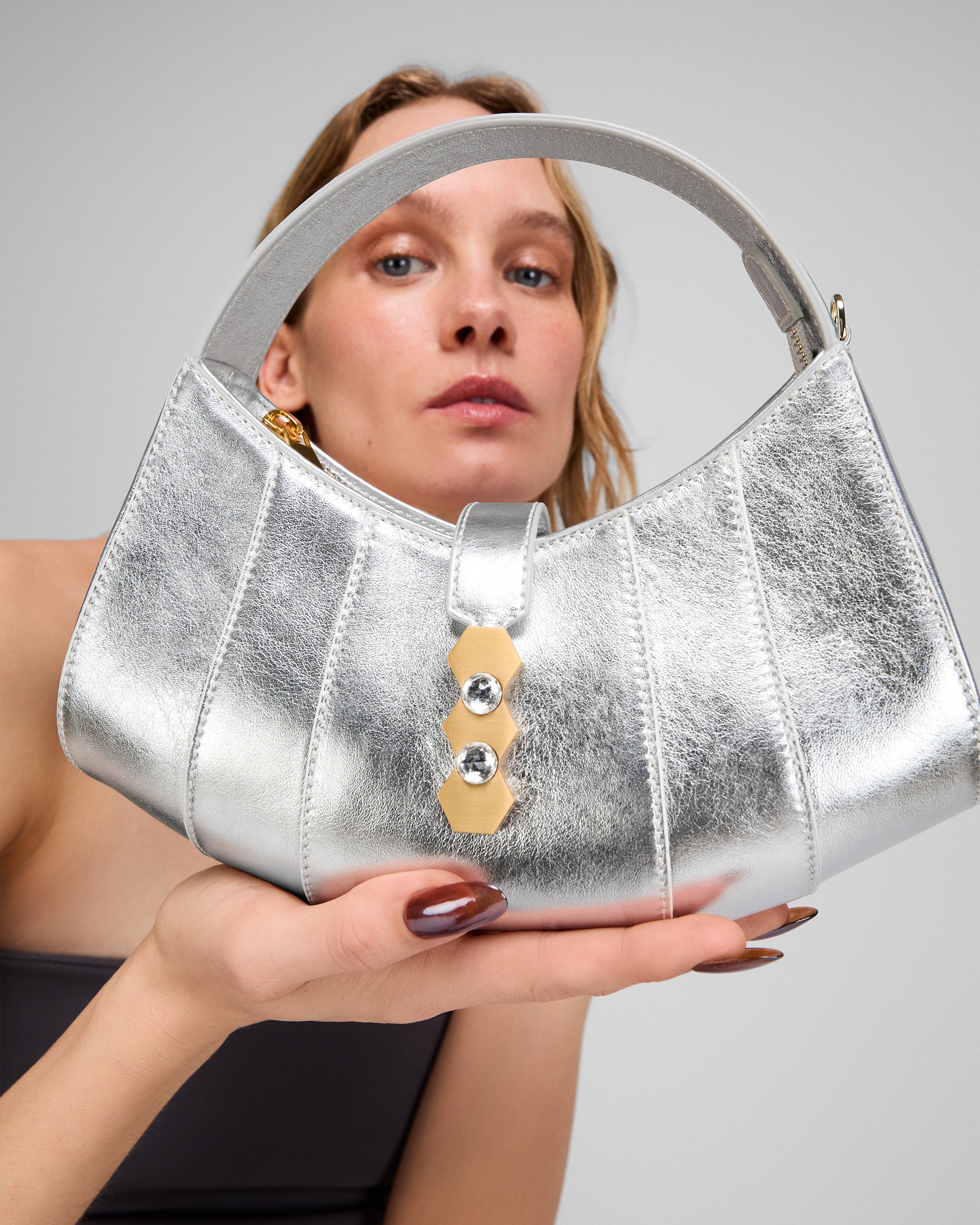 • Gold-toned hardware.