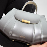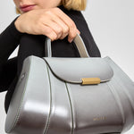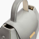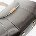 The Tatito handbag features smooth calf leather in signature geometric lines. It can be worn by the top ergonomic handle or by its adjustable leather shoulder strap, offering versatile styling options.