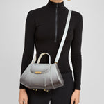 Each Tatito bag is meticulously hand-painted, showcasing a captivating degradé effect that transitions from deep navy to moonstruck, adding a unique and artistic dimension to its elegant design. The bag is finished with a polished buckle, giving this leather piece a refined and eye-catching look.