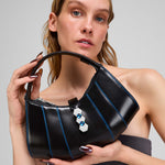 The Tate Petite bag it is a refined, elegant and instantly recognizable sculptural shape to those in love with the brand, as it comes from the family of the iconic Tatu and Tatito Bags. The Tate Petite handbag is assembled from shiny leather and can be carried by the top handle or drape it cross-body. The vibrant color combinations are embellished with the gleaming gold hexagonal Mietis hardware.