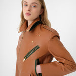 The Classic Biker is made with 100% calf leather. The design features a notched lapel collar with press-stud fastening. Offset zip closure and side pockets. Integrated adjustable belt at waist.