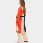 The refined material is showcased in pastel colors and meticulous stitching. The straight cut is modern and elegant.