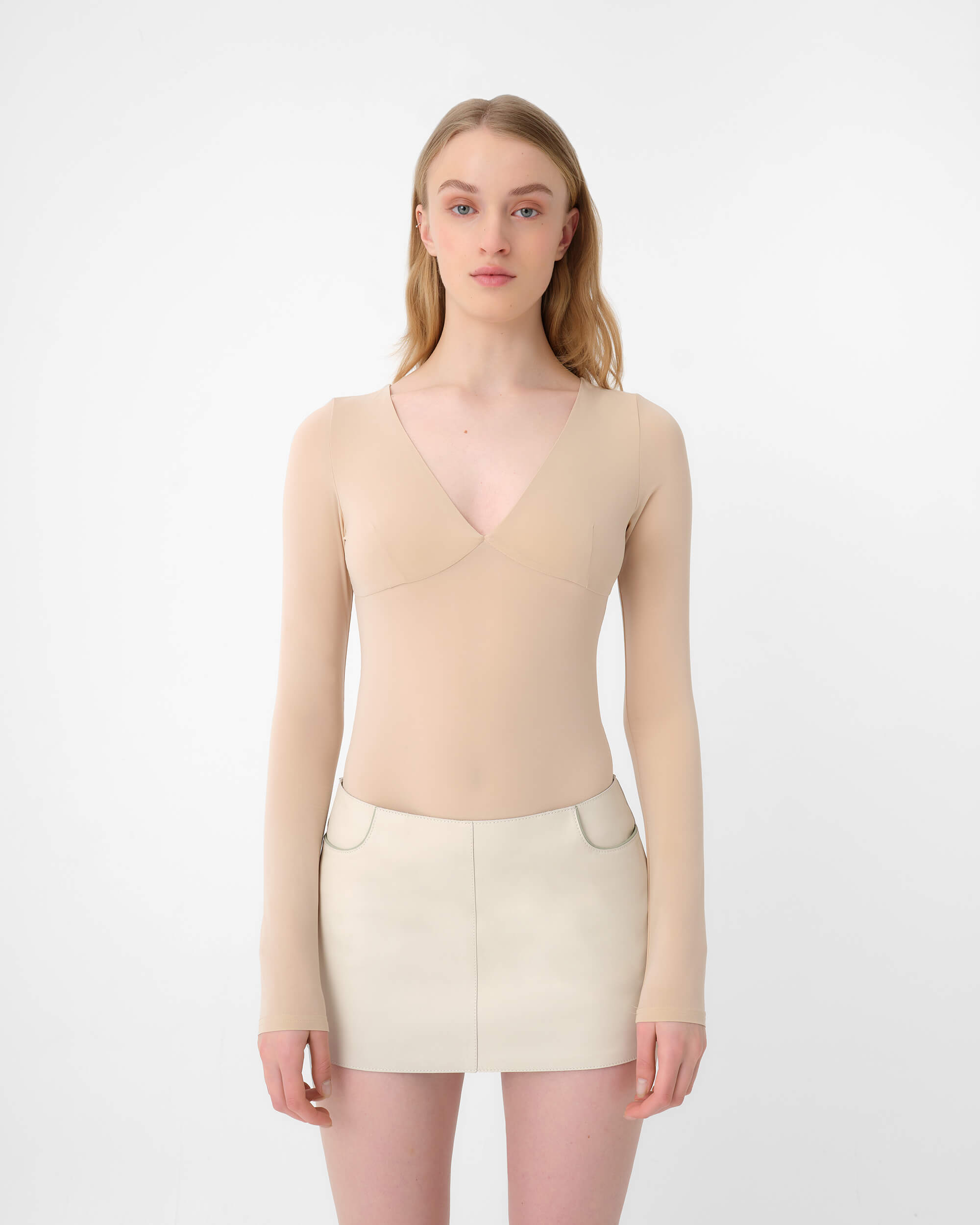 The Tate Mini Skirt is crafted from smooth calf leather, blending modern cuts and classical techniques.