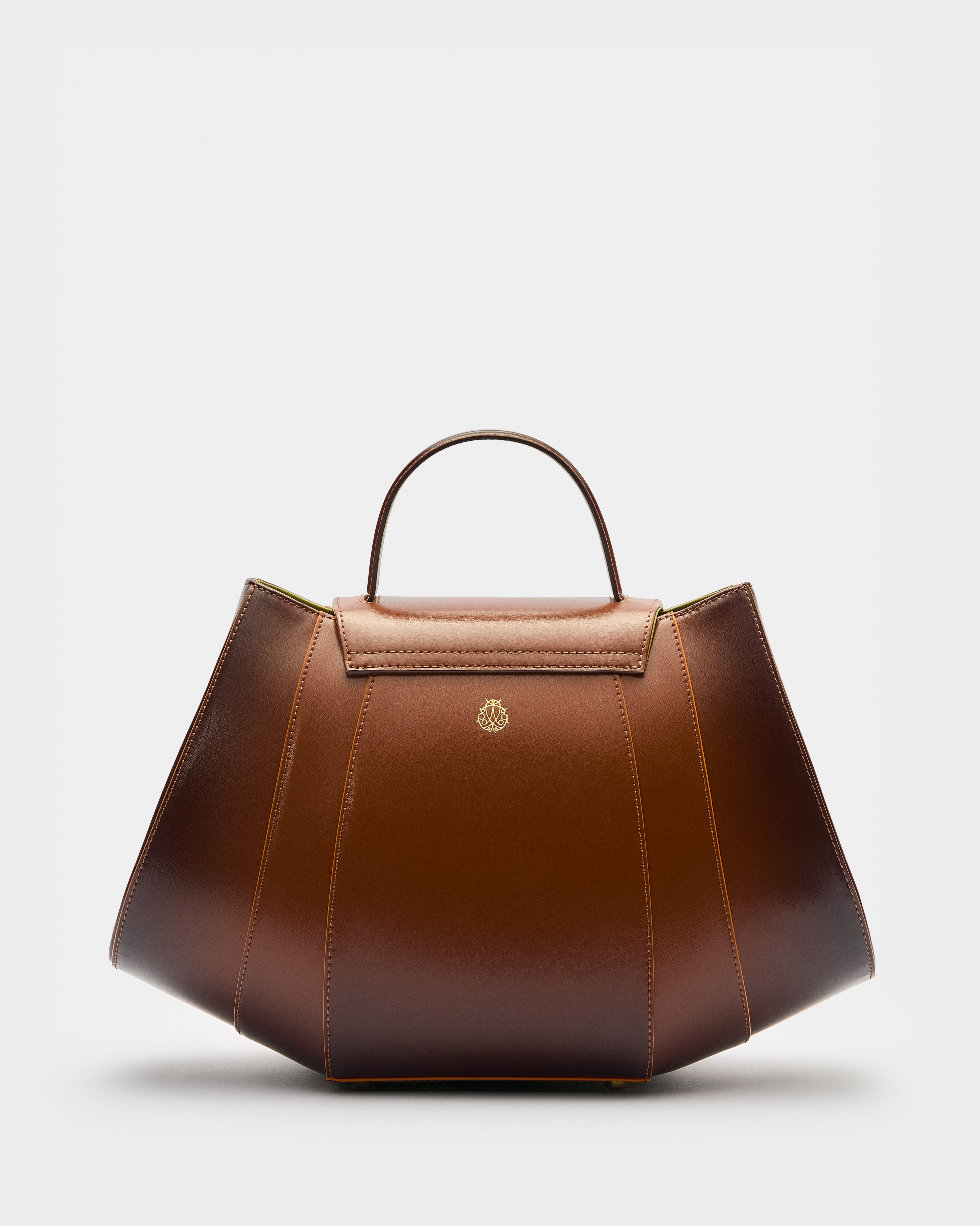 • Signature geometric silhouette with contrasting hand-painted edges and stitching