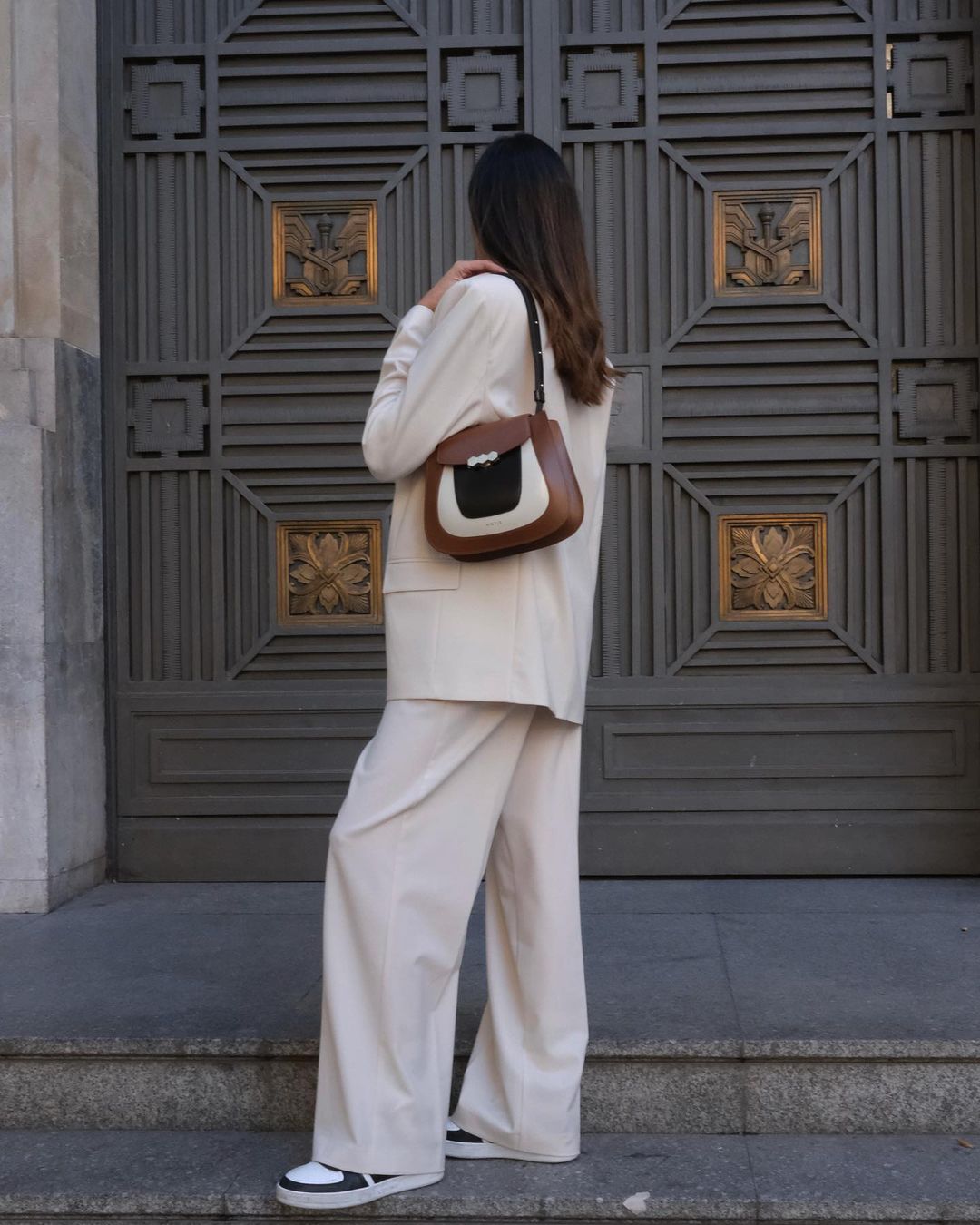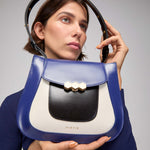 The Jill bag, inspired by the 70s, is a structured bag with a stiffer and shinier cowhide leather, applying the contemporary touch of Mietis with the detail of the hand-painted edges and contrasting stitching. The Jill bag is finished with a custom metallic closure: the three hexagons, which symbolize harmony and balance.