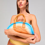 In this special collab with 4CCCCEEEES, it takes on new life through a sand-toned gradient that evokes desert horizons — from deep amber to soft beige. Crafted in our premium mia leather, its padded body features the iconic Mediterranean curves and Mietis logo in relief.