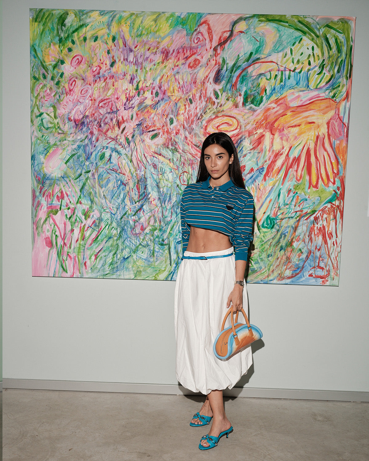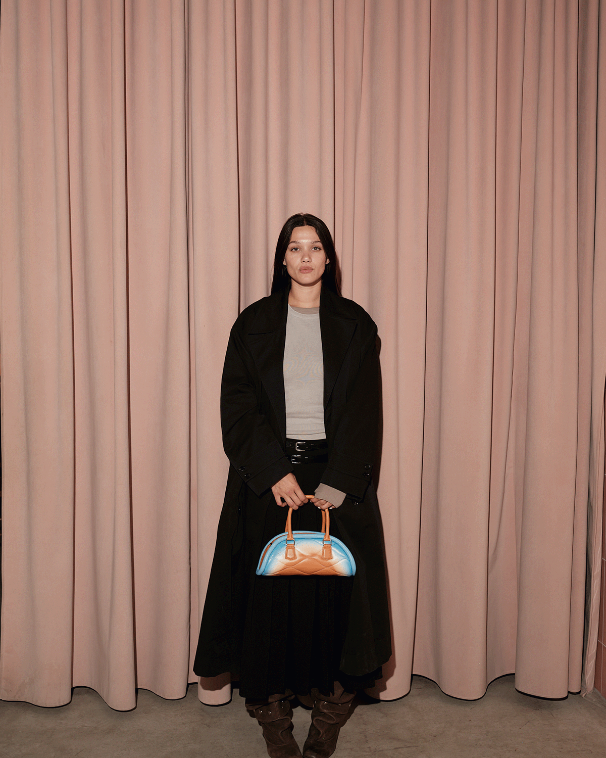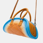 The piping outlines its dynamic shape, enhancing the natural flow of tones. It’s both functional and sculptural — with a zipper closure, an organized interior, and the option to wear it crossbody or in hand. Crafted for wanderers with vision.