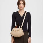 The Tatito handbag features a smooth calf leather in signature geometric lines. It can be worn by the top ergonomic handle or by its leather shoulder adjustable strap. The Tatito bag is finished with a polished buckle giving this leather piece an elegant, eye-catching look.
