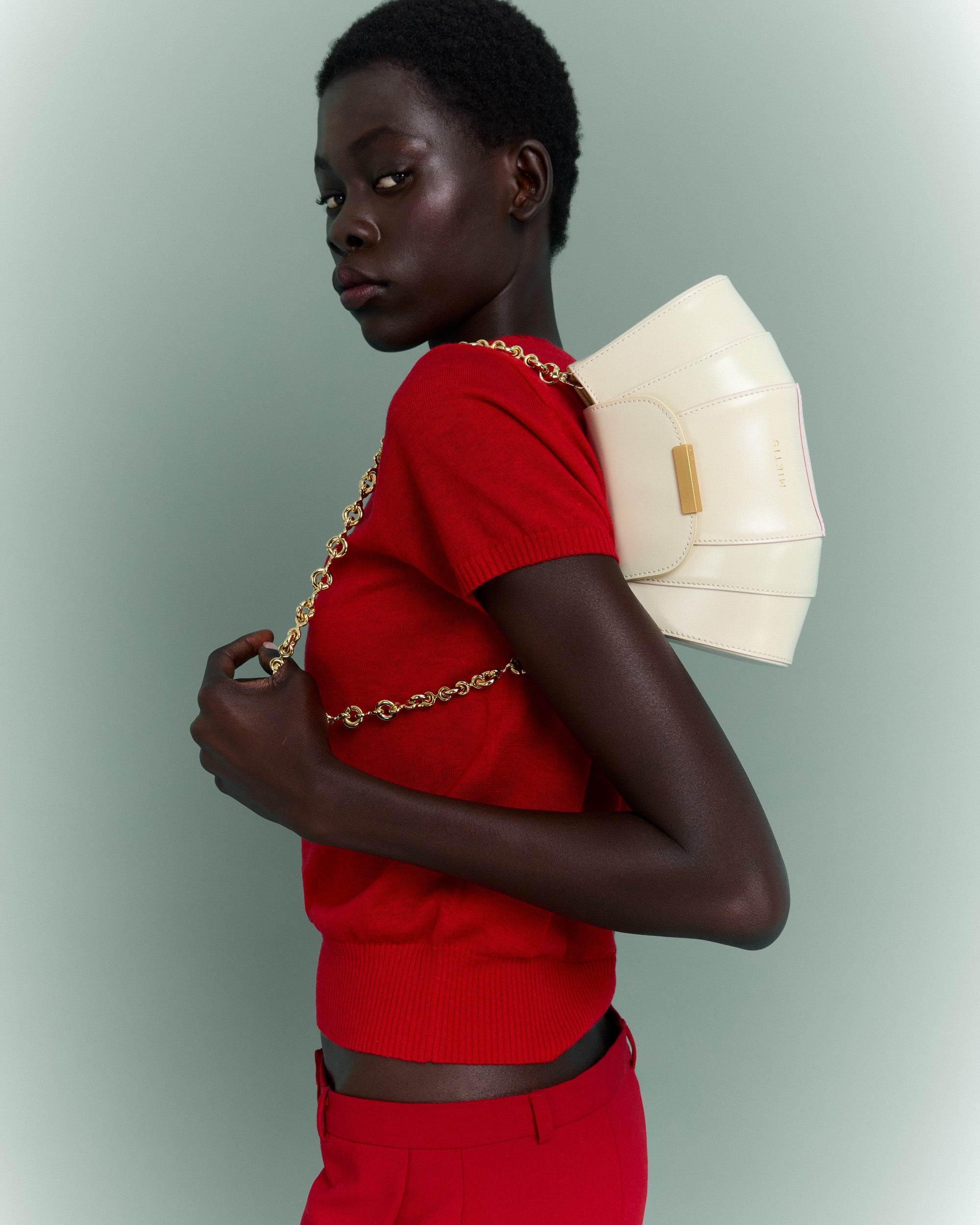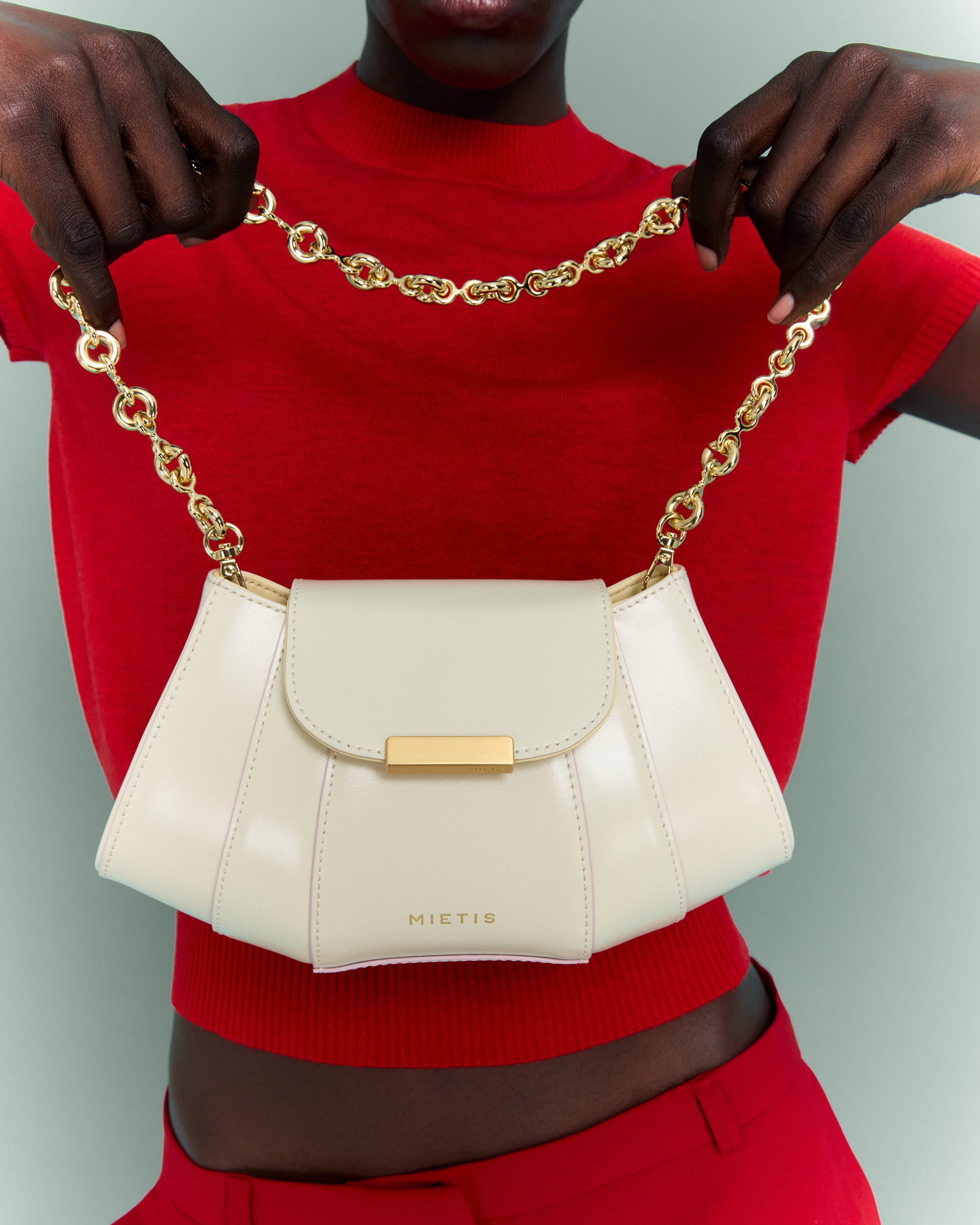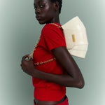 The gold chain lets you wear it on the shoulder or crossbody, while the structured shape keeps it looking impeccable.