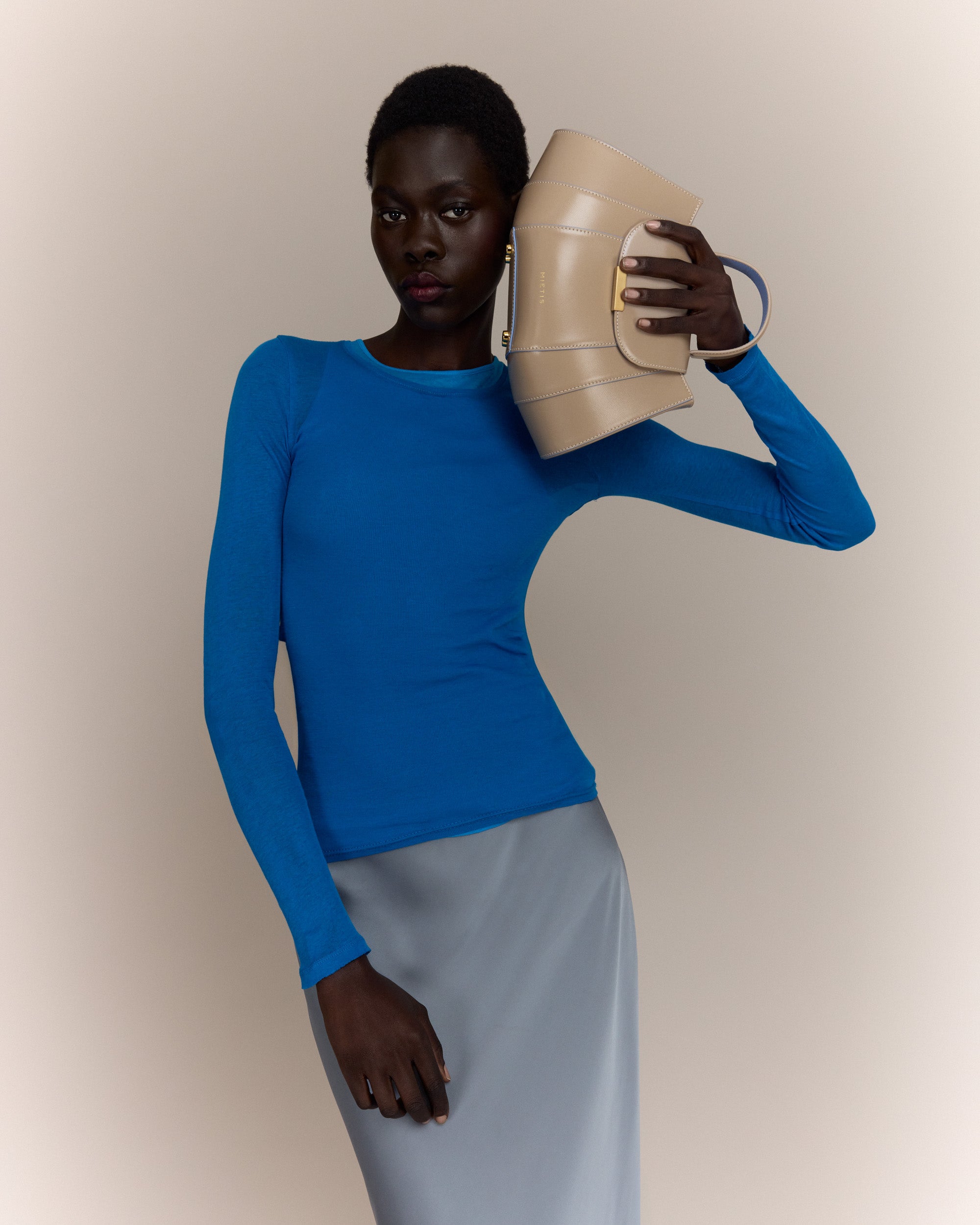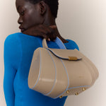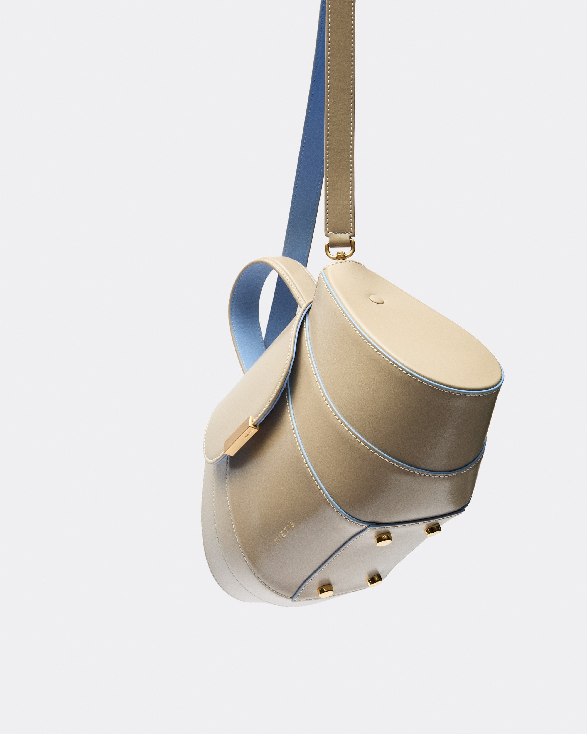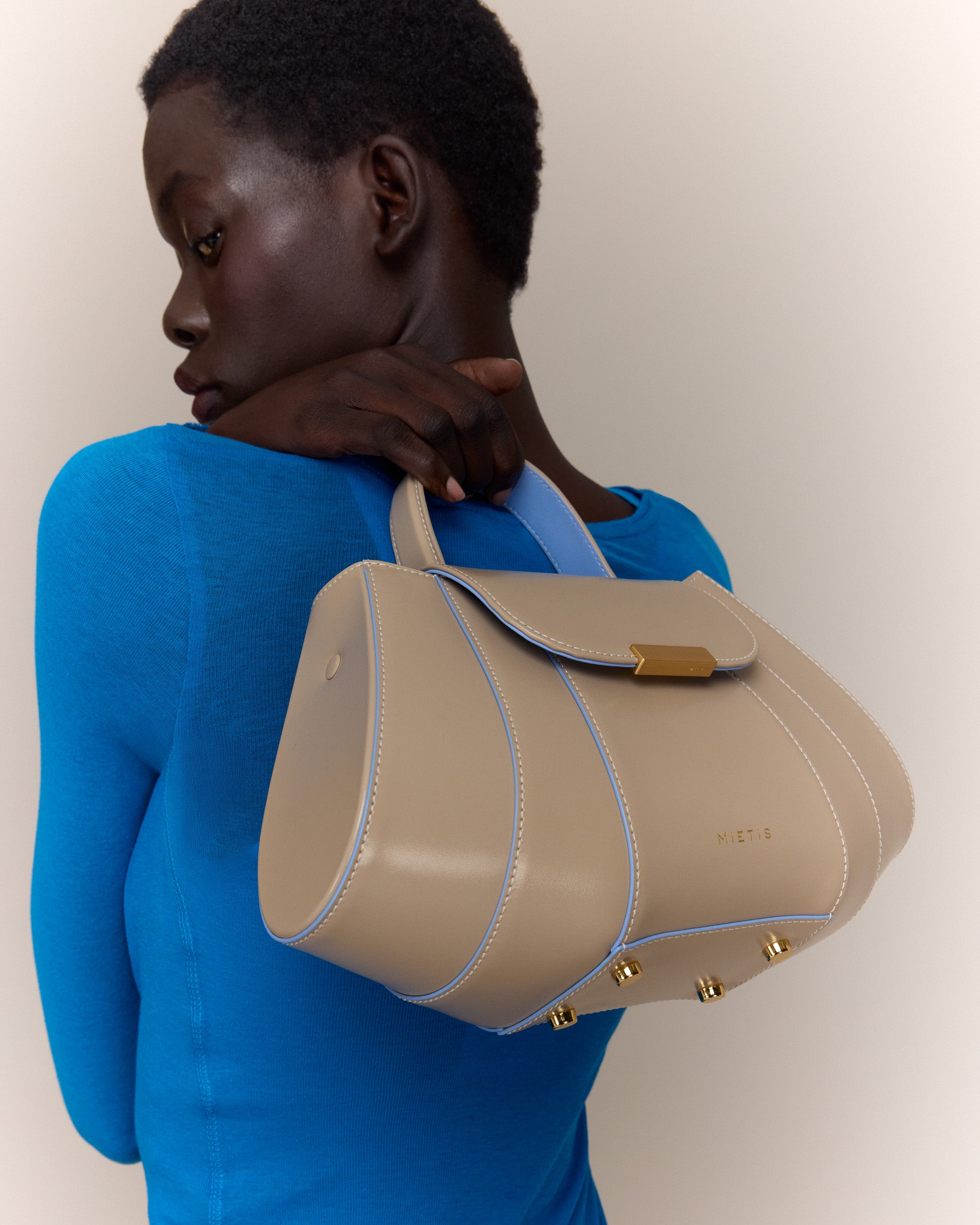 The Tatito bag is a bold expression of Mietis' signature craftsmanship, defined by its sculptural silhouette and impeccable structure. Crafted from smooth, stiff calf leather, its clean geometric lines create a refined yet distinctive presence. Designed for versatility, it can be elegantly carried by its top ergonomic handle or worn crossbody with its adjustable leather strap. The polished buckle detail adds a striking finishing touch, ensuring this piece stands out as a true statement of contemporary luxury.