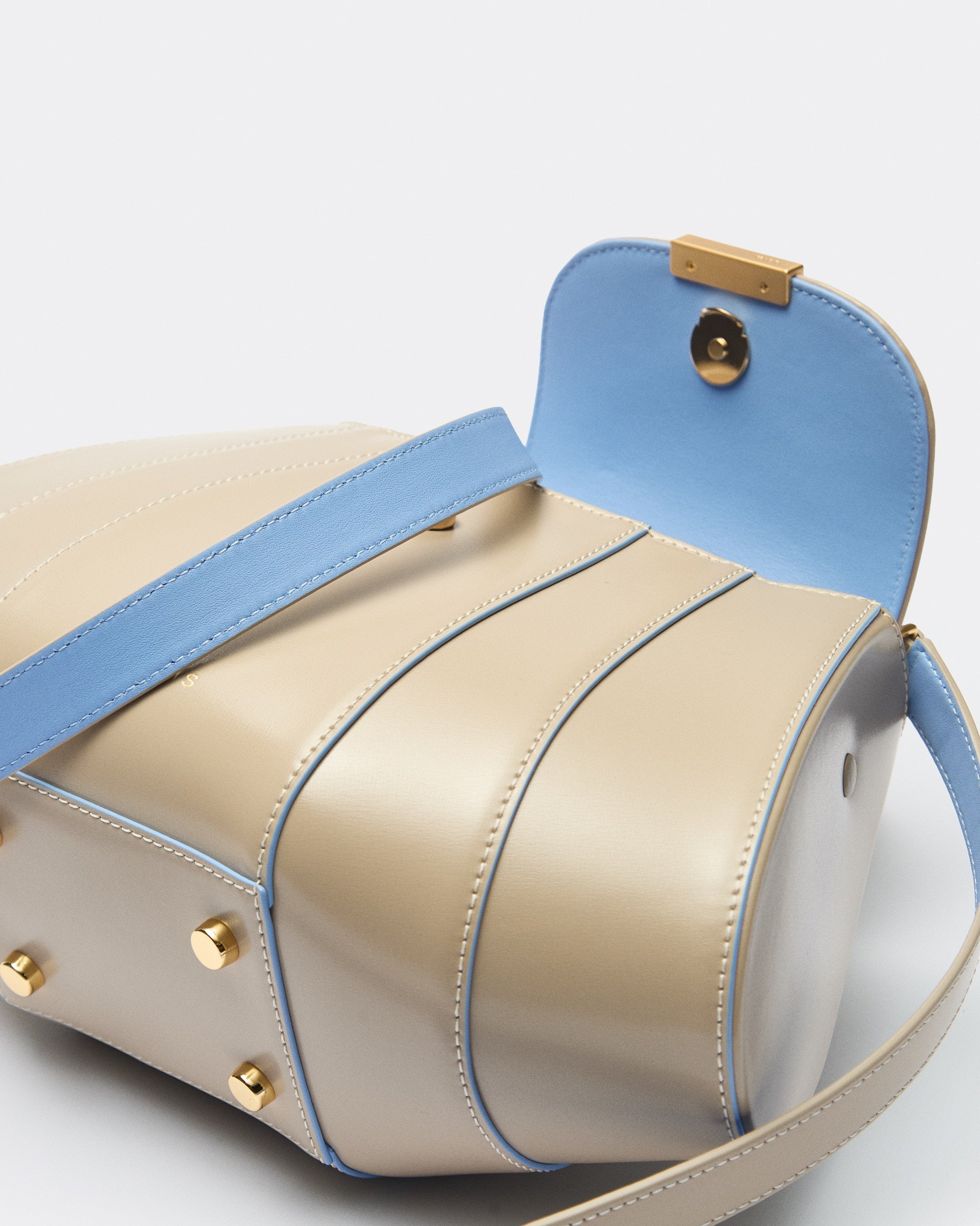• Sculptural elegance: Stiff, smooth cowhide leather for a structured silhouette.