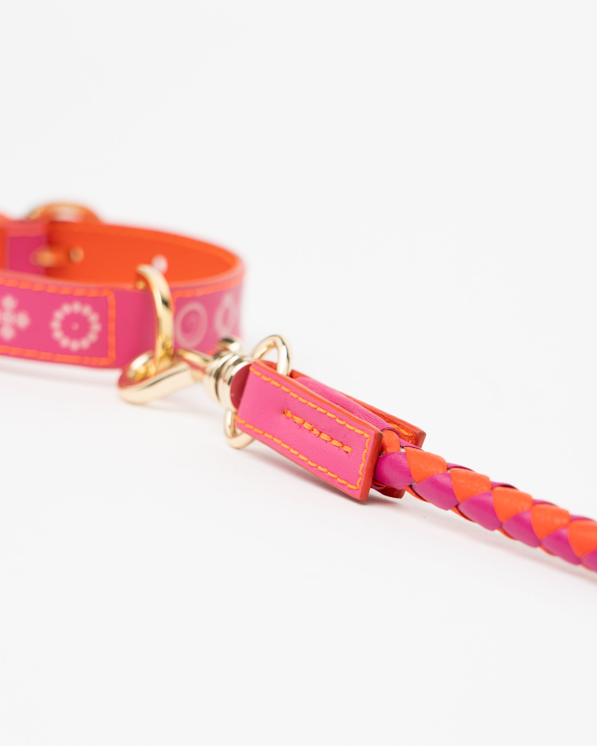 This vibrant dog leash, a collaboration between Casa Batlló and Mietis, is crafted from premium calf leather and features a unique design in fuchsia or blue. Adorned with illustrations of Gaudí's most iconic symbols from Casa Batlló, it combines functionality with artistic charm, making it a standout accessory for your pet.