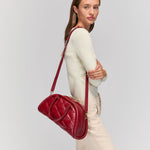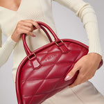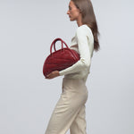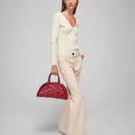 It can be used in hand or crossbody wear, with a zipper closure for easy access to an organized interior.