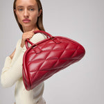 Its evolving shape, highlighted by a bold distinctive trim, creates an appealing play of colors.  Crafted in Mia leather for a luxurious tactile experience, it features a padded body with slightly flattened diamonds and the MIETIS logo in relief.
