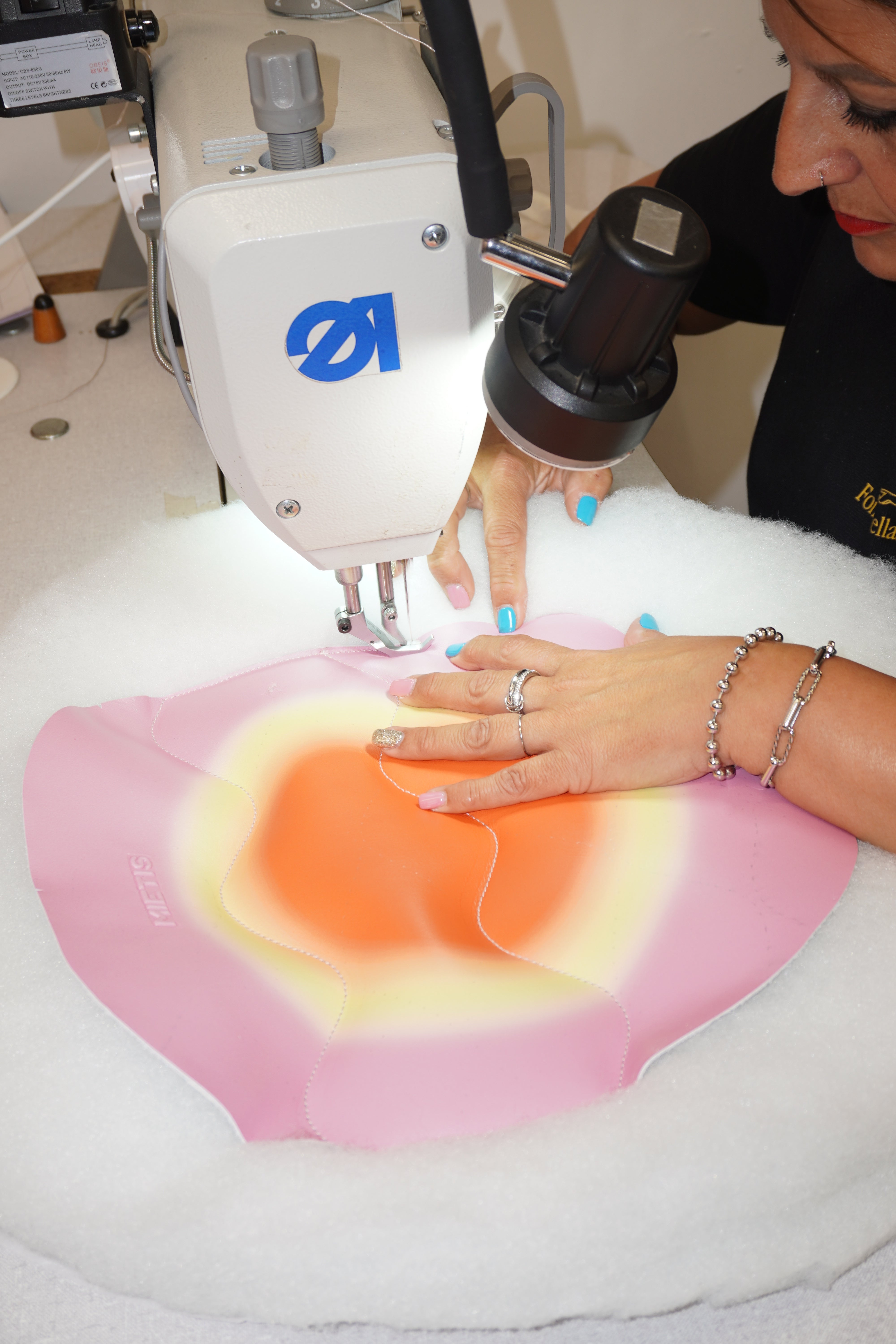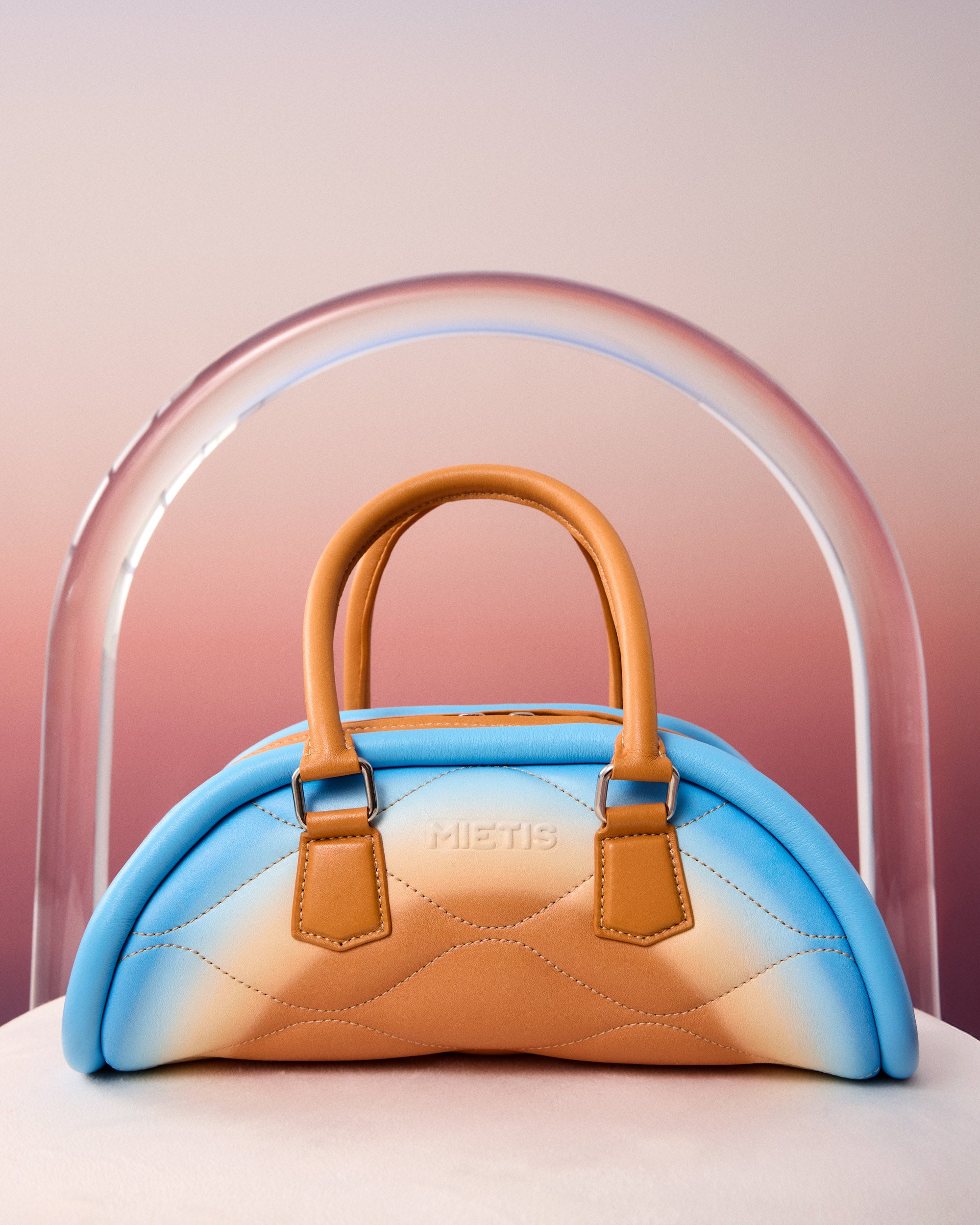 In this special collab with 4CCCCEEEES, it takes on new life through a sand-toned gradient that evokes desert horizons — from deep amber to soft beige. Crafted in our premium mia leather, its padded body features the iconic Mediterranean curves and Mietis logo in relief.