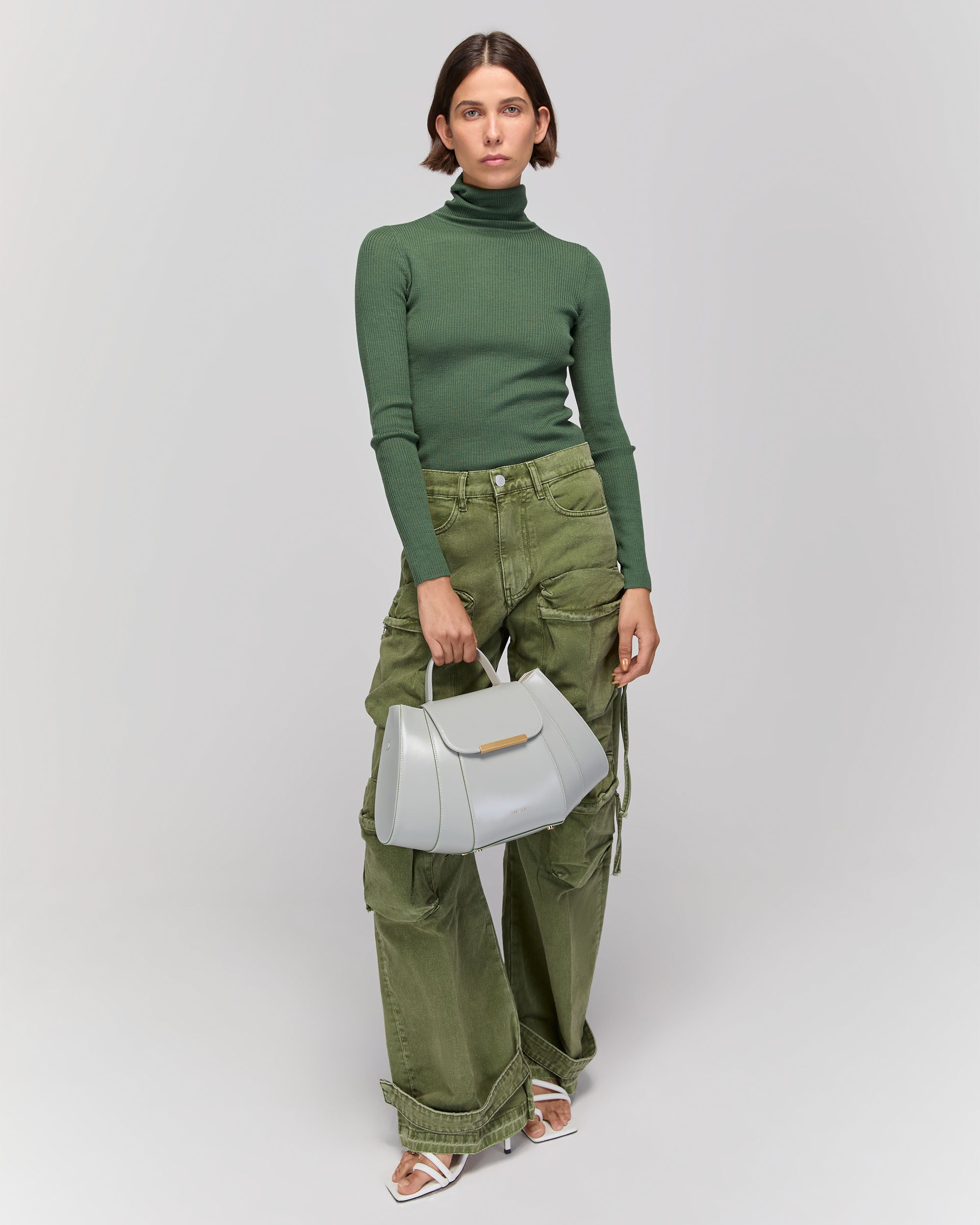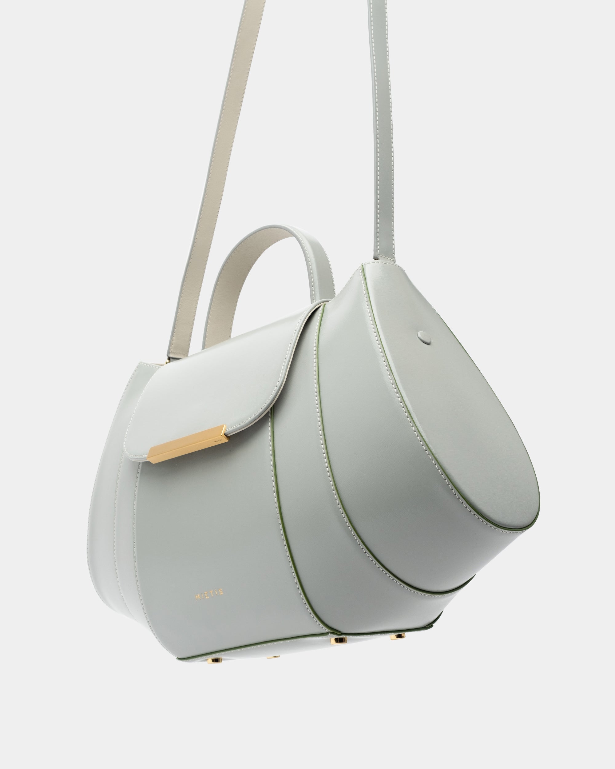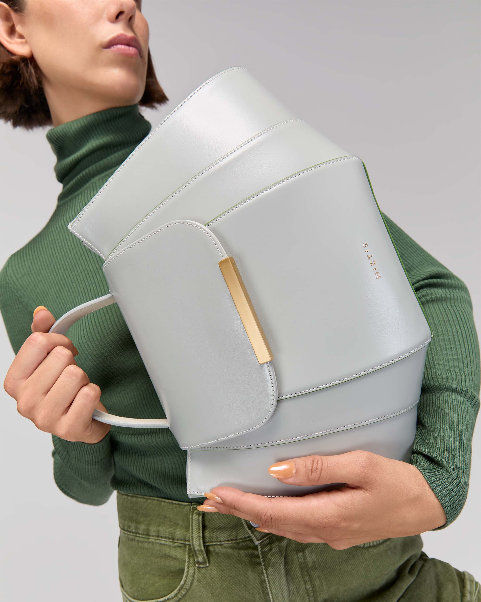 Versatile and eye-catching, Tatu Bag and its innovative silhouette guarantees a modern comfort and different attitudes as it can be worn cross body or hand-held. Key features: Calfskin, Cotton lining and one internal slip compartment. Central flap with magnetic closure. The hand-painted edges embodies Mietis’s artisanal savoir faire with a modern sensibility.