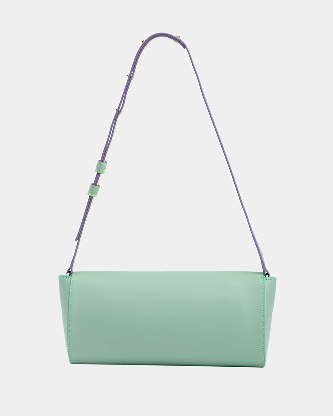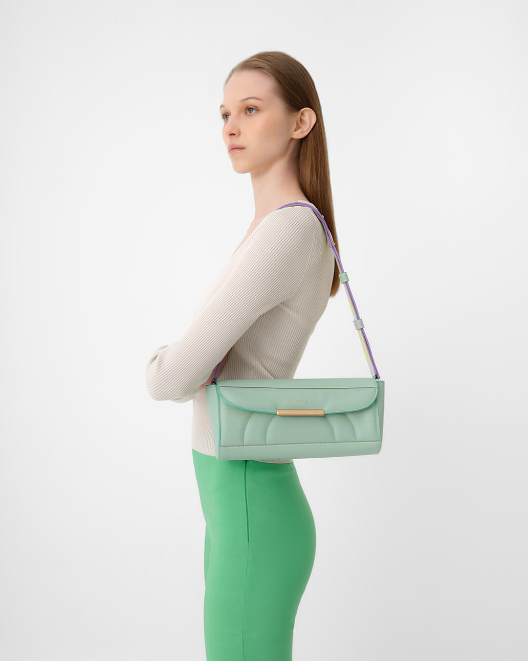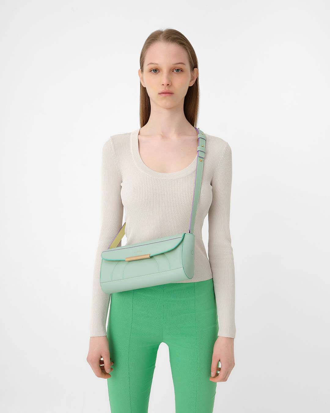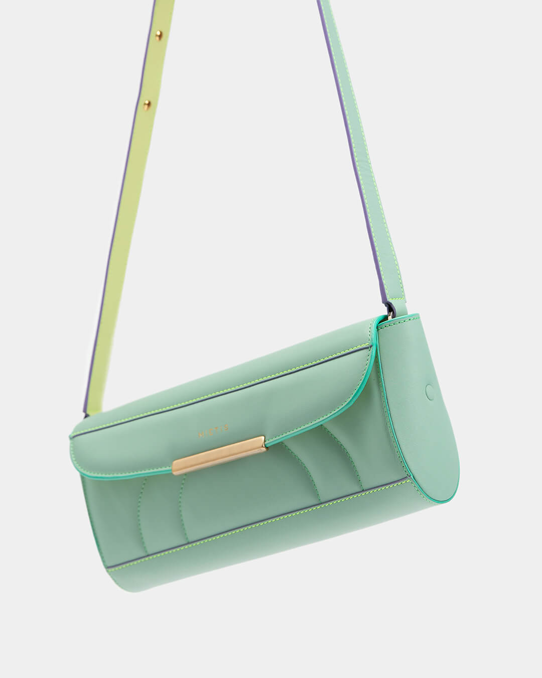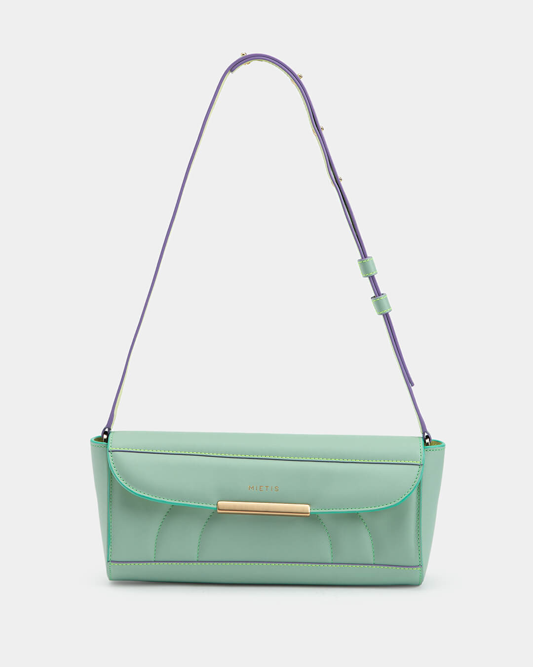 The Blossom shoulder bag is crafted from smooth calf leather and finished with a gold polished buckle in a sleek design. The bag lends a subtly playful touch to everyday codes with its padded wavy pattern at the front and colorful stitching. Wear it on the shoulder or cross-body. The Blossom bag is finished with the Mietis’ signature logo engraved in gold.