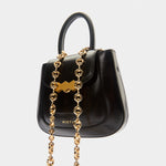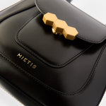 The Mini Jill bag, inspired by the 70s, is a structured bag with a stiffer and shinier cowhide leather, applying the contemporary touch of Mietis with the detail of the hand-painted edges and stitching in contrasting colors. The Jill bag is finished with a custom metallic closure: the three hexagons, which symbolize harmony and balance.