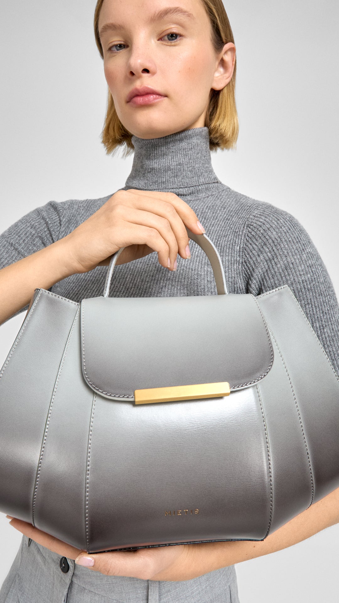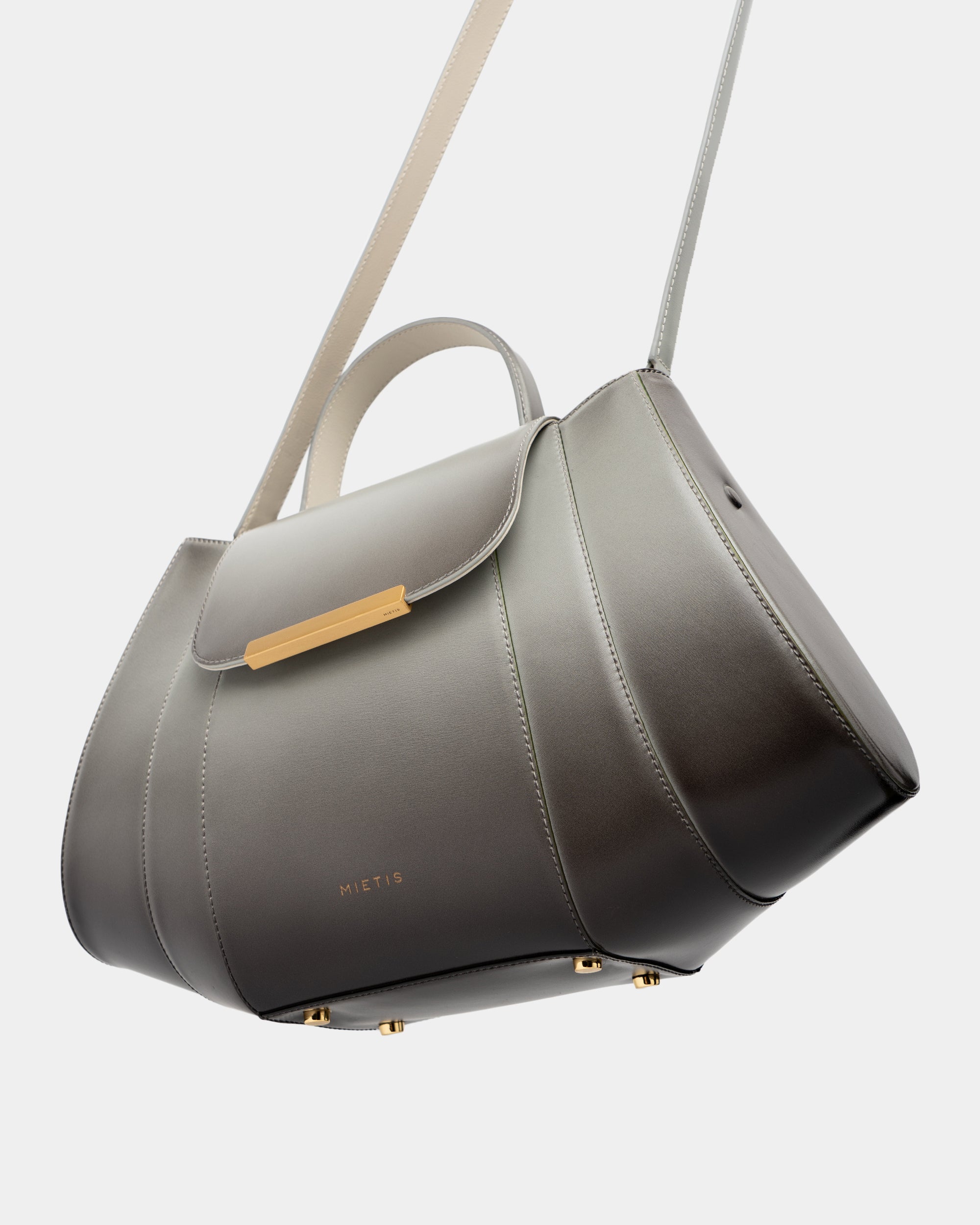 Each Tatu Bag is meticulously hand-painted, featuring a stunning degradé effect that flows from deep navy to moonstruck, showcasing Mietis’s artisanal savoir-faire with a modern sensibility. Key features include calfskin, cotton lining, and one internal slip compartment, with a central flap secured by a magnetic closure.