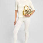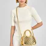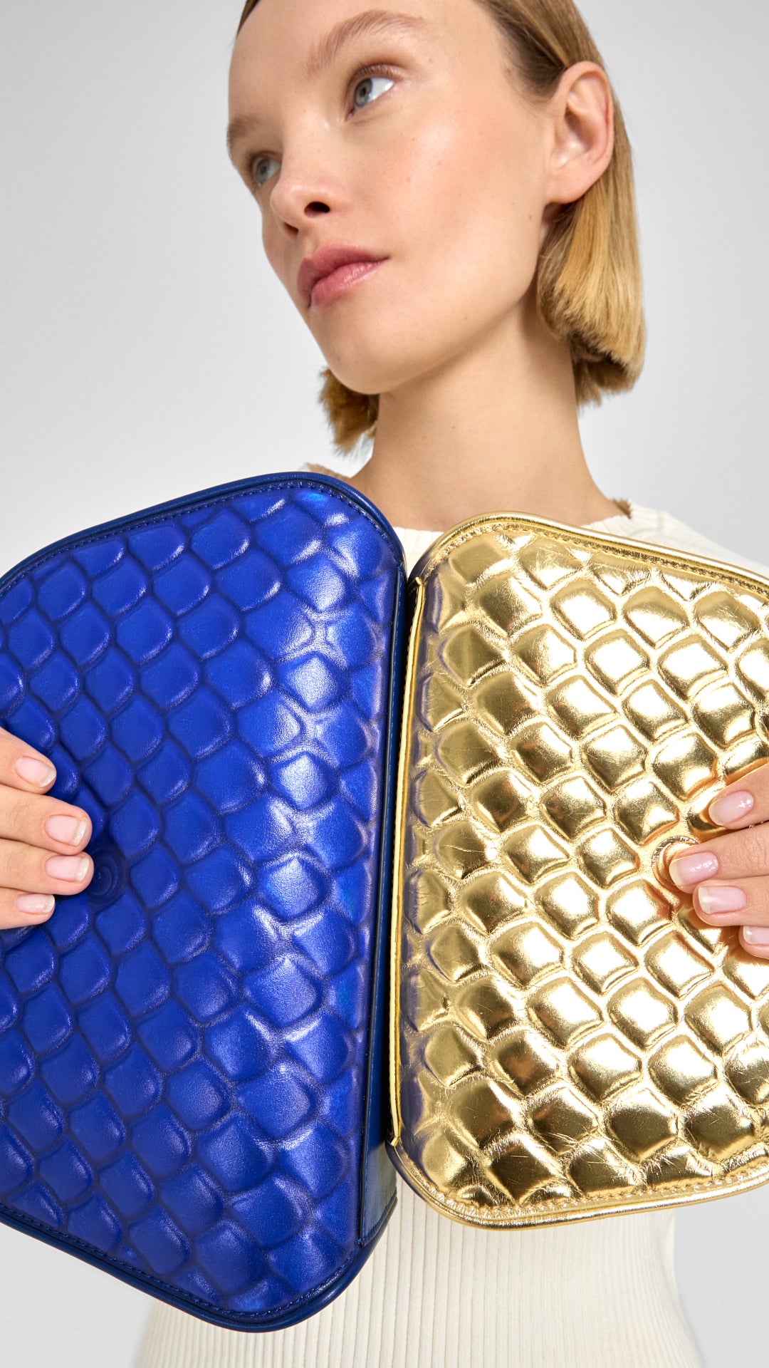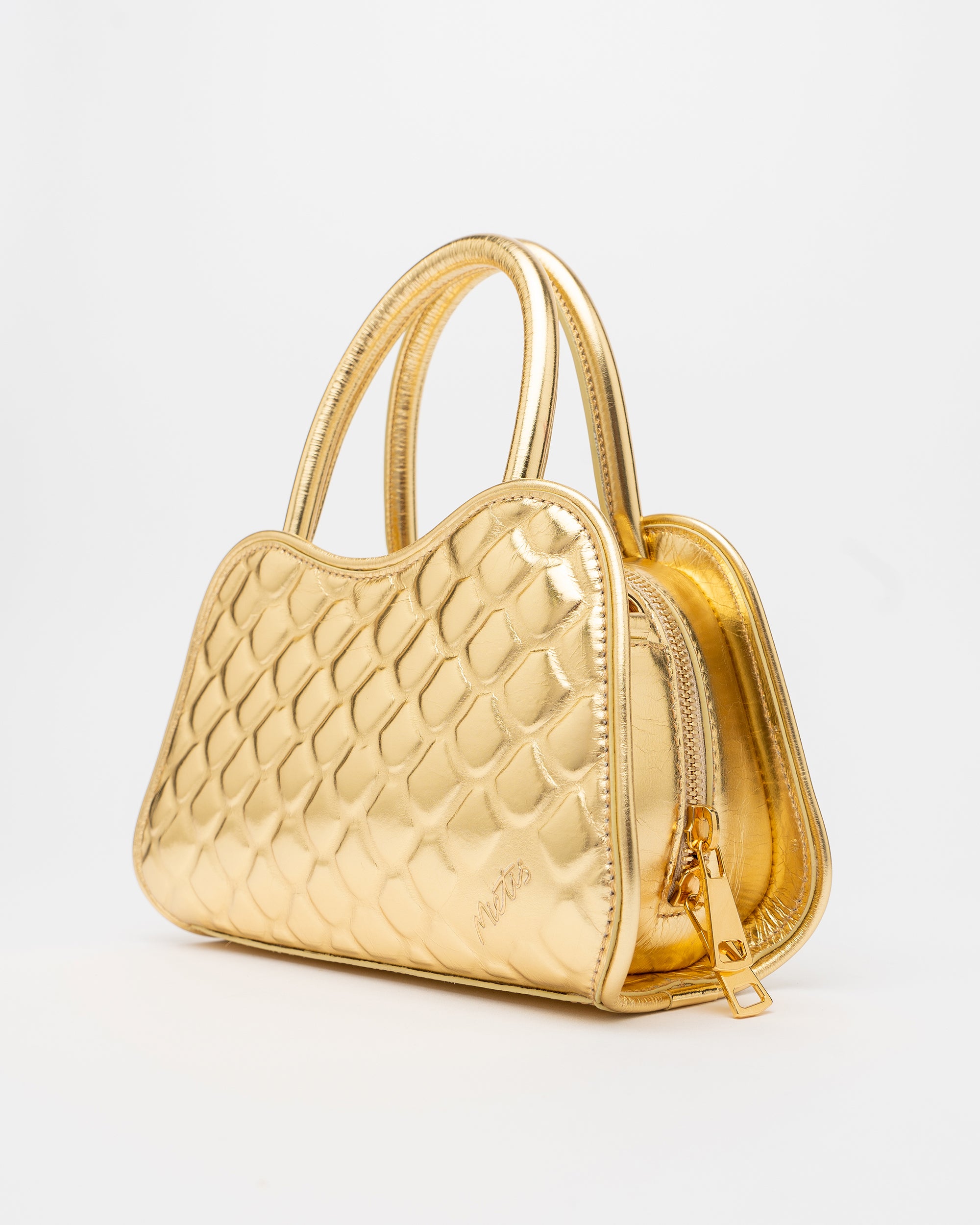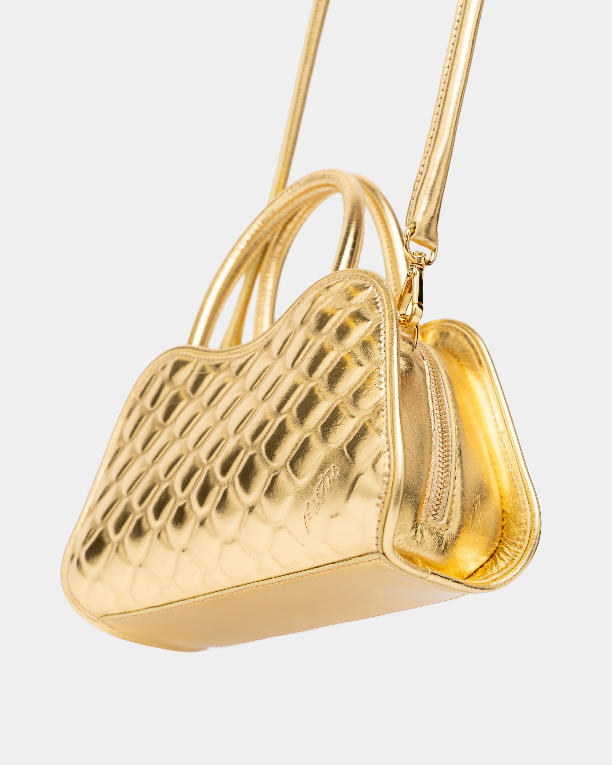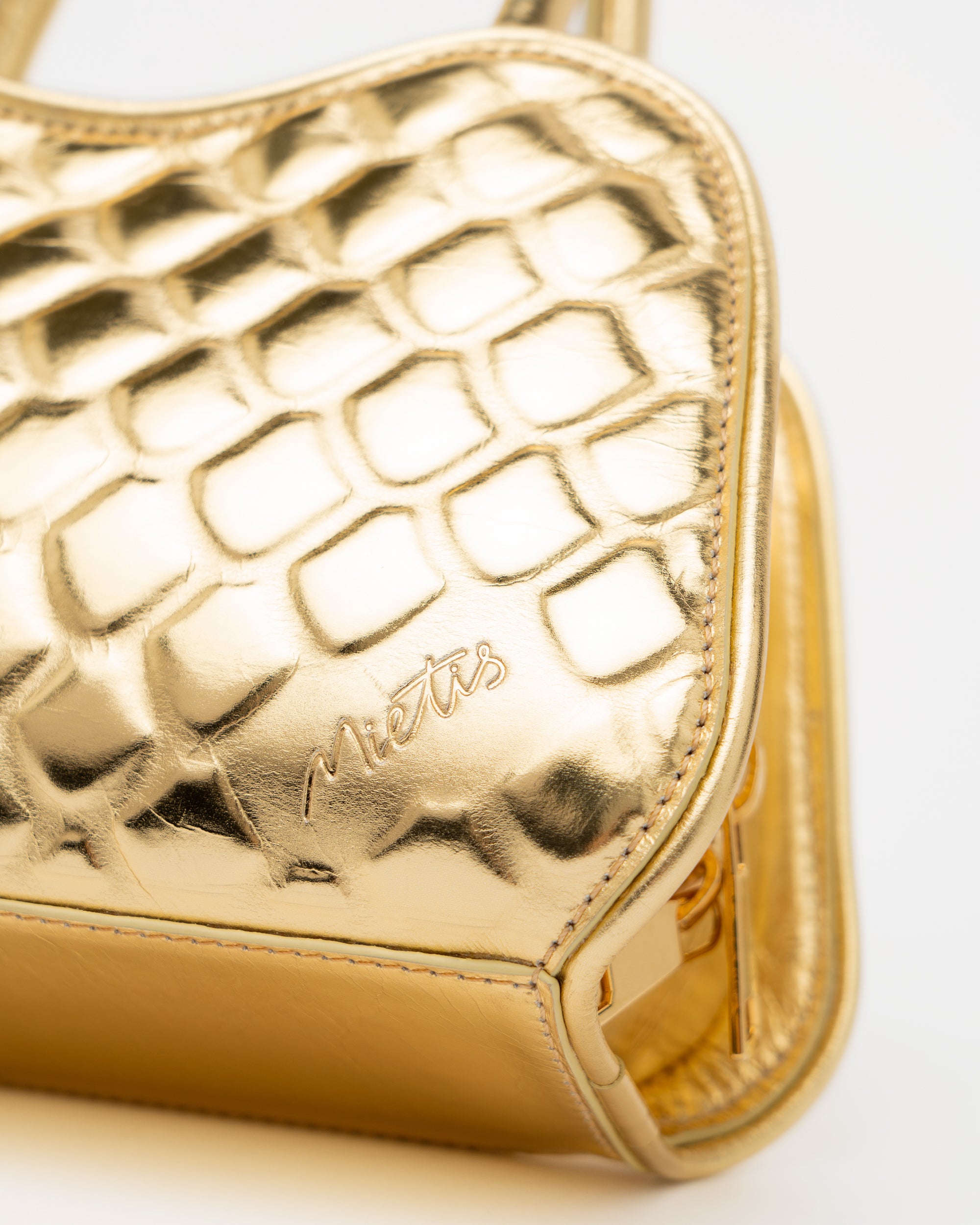 Geometric elegance takes center stage in the latest creation by Mietis’s creative director. Introducing the Batlló Bag – reimagined in a Winter Gold version. This exclusive edition features rhomboid patterns, inspired by the shapes of iconic architectural forms, delicately embossed onto luxurious gold leather.