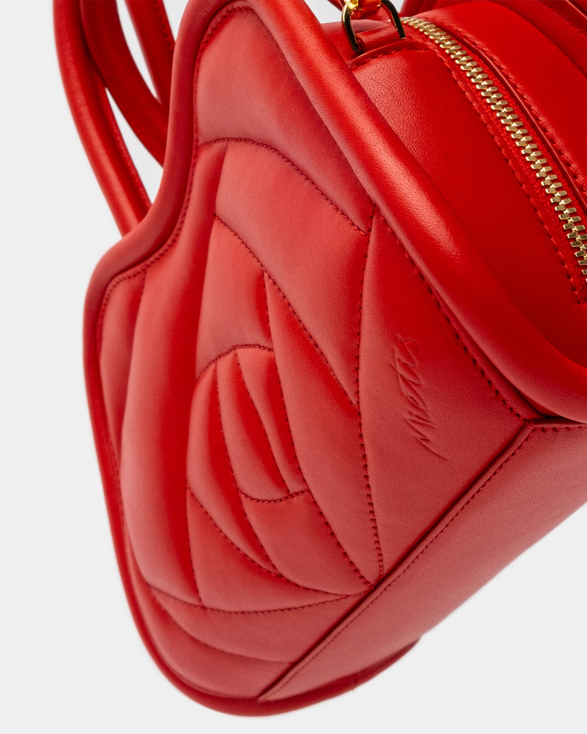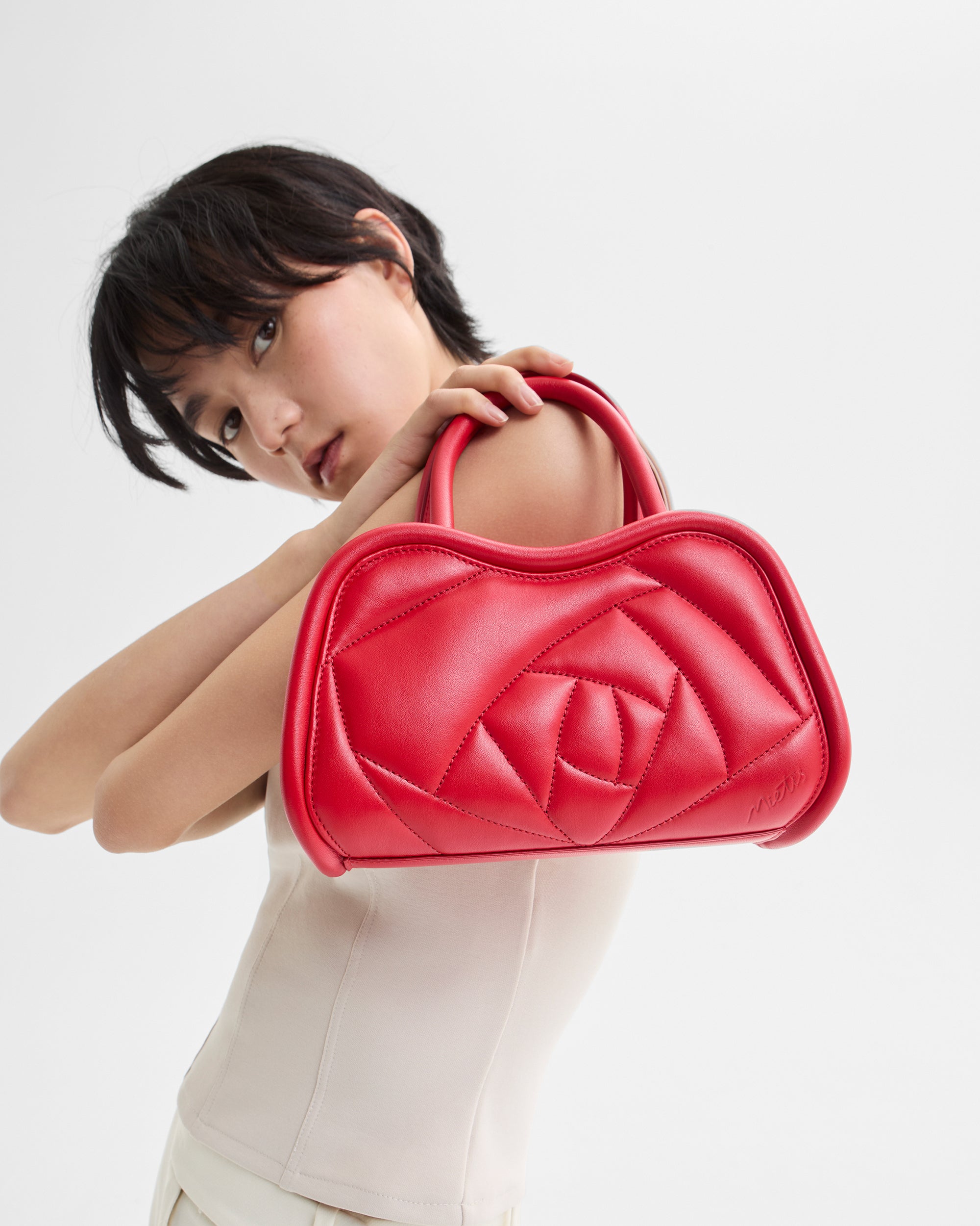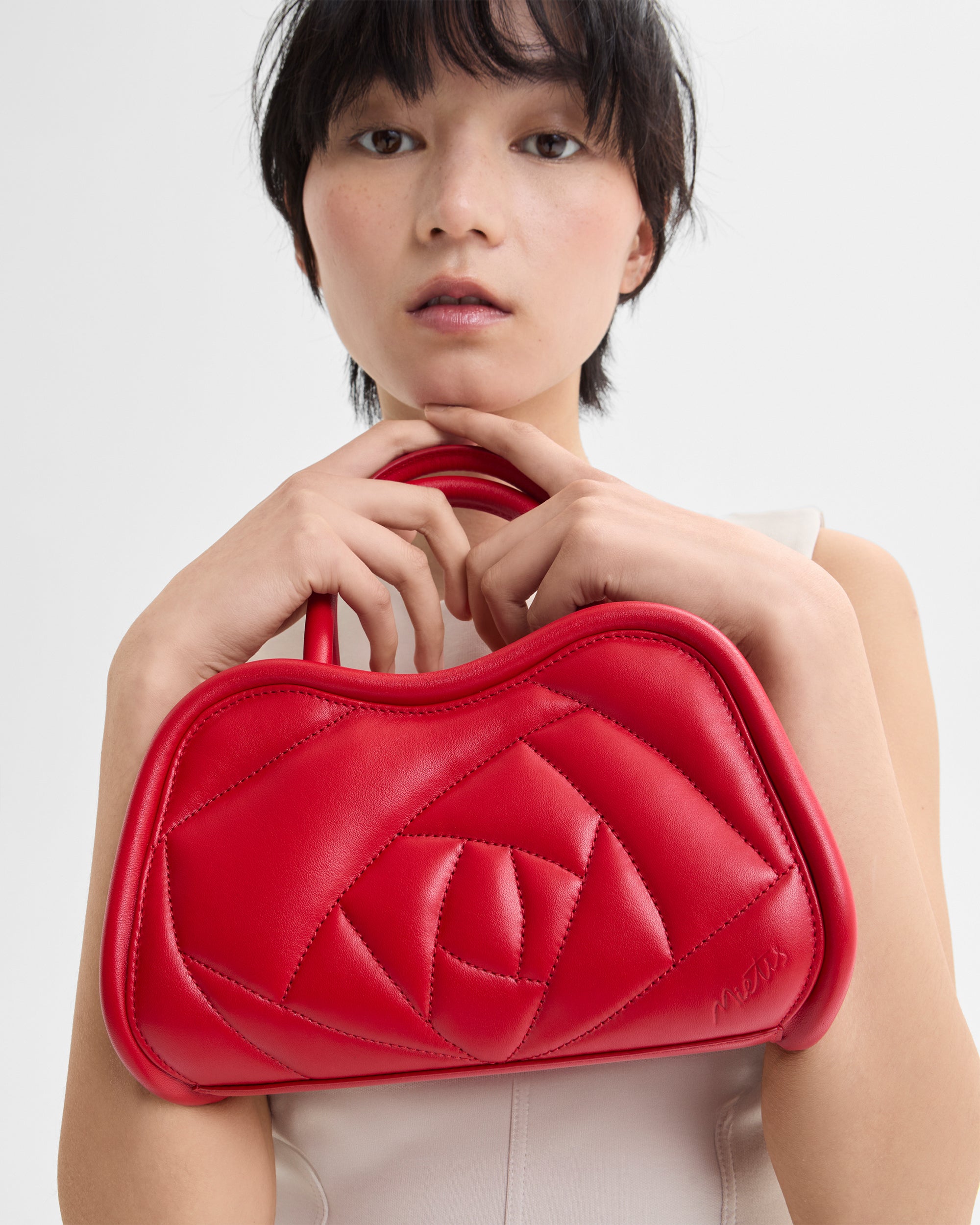 Meticulously crafted from padded soft cow leather, its voluminous rose shape makes it both an artwork and an accessory. The metallic zip closure ensures security, while the tubular leather strap allows for effortless crossbody wear.