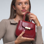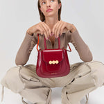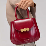The Mini Jill bag, inspired by the 70s, is a structured bag with a stiffer and shinier cowhide leather, applying the contemporary touch of Mietis with the detail of the hand-painted edges and stitching in contrasting colors. The Jill bag is finished with a custom metallic closure: the three hexagons, which symbolize harmony and balance.