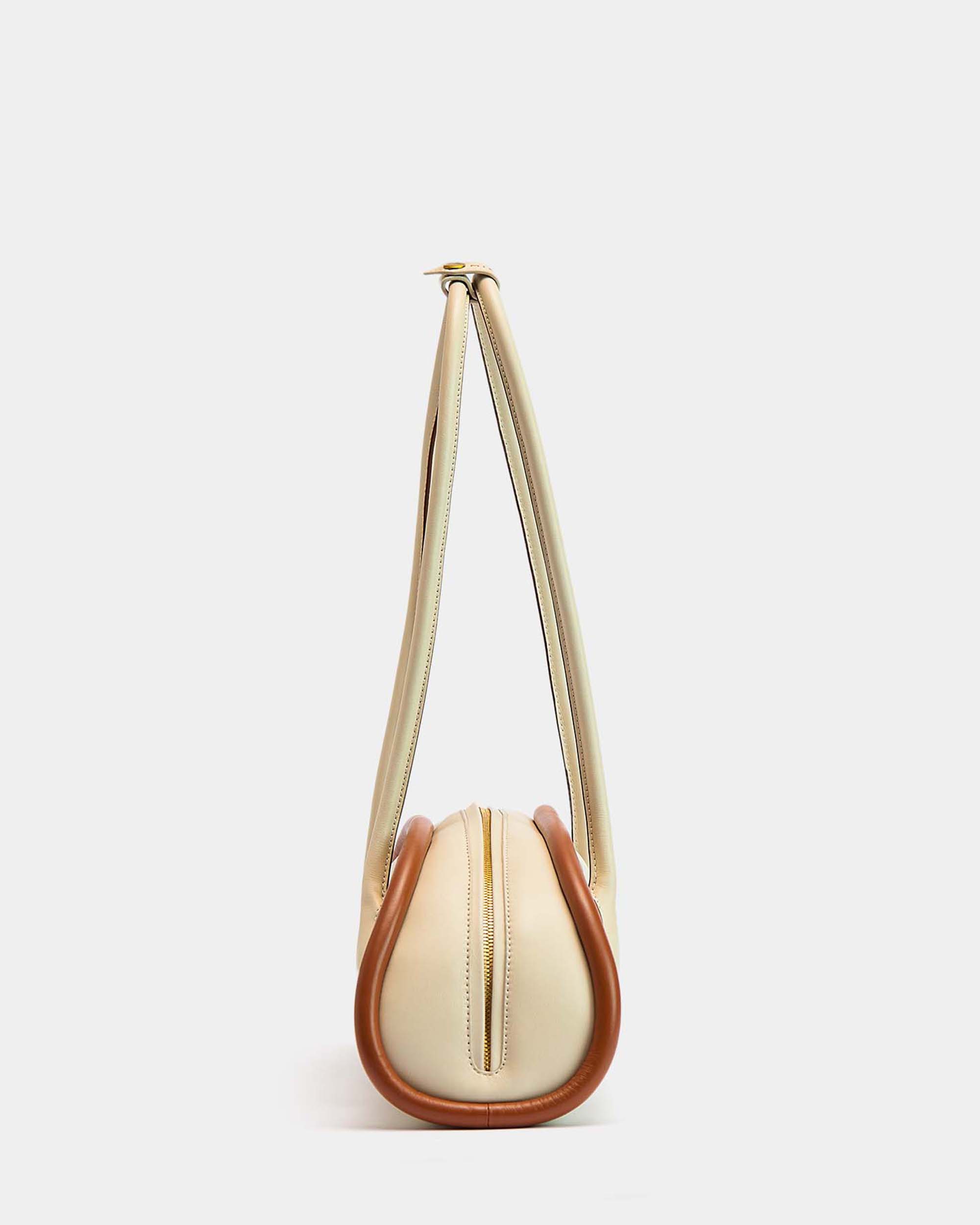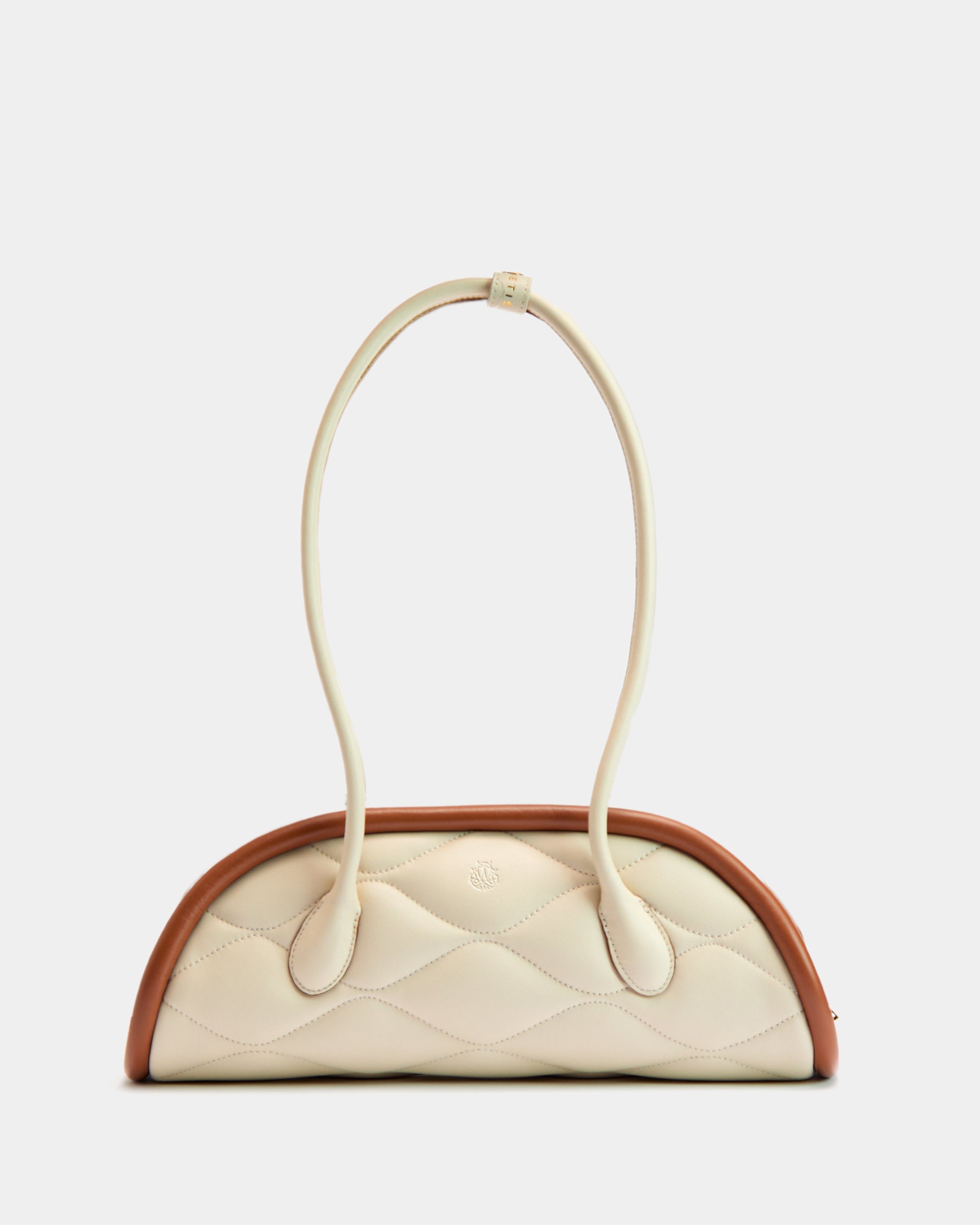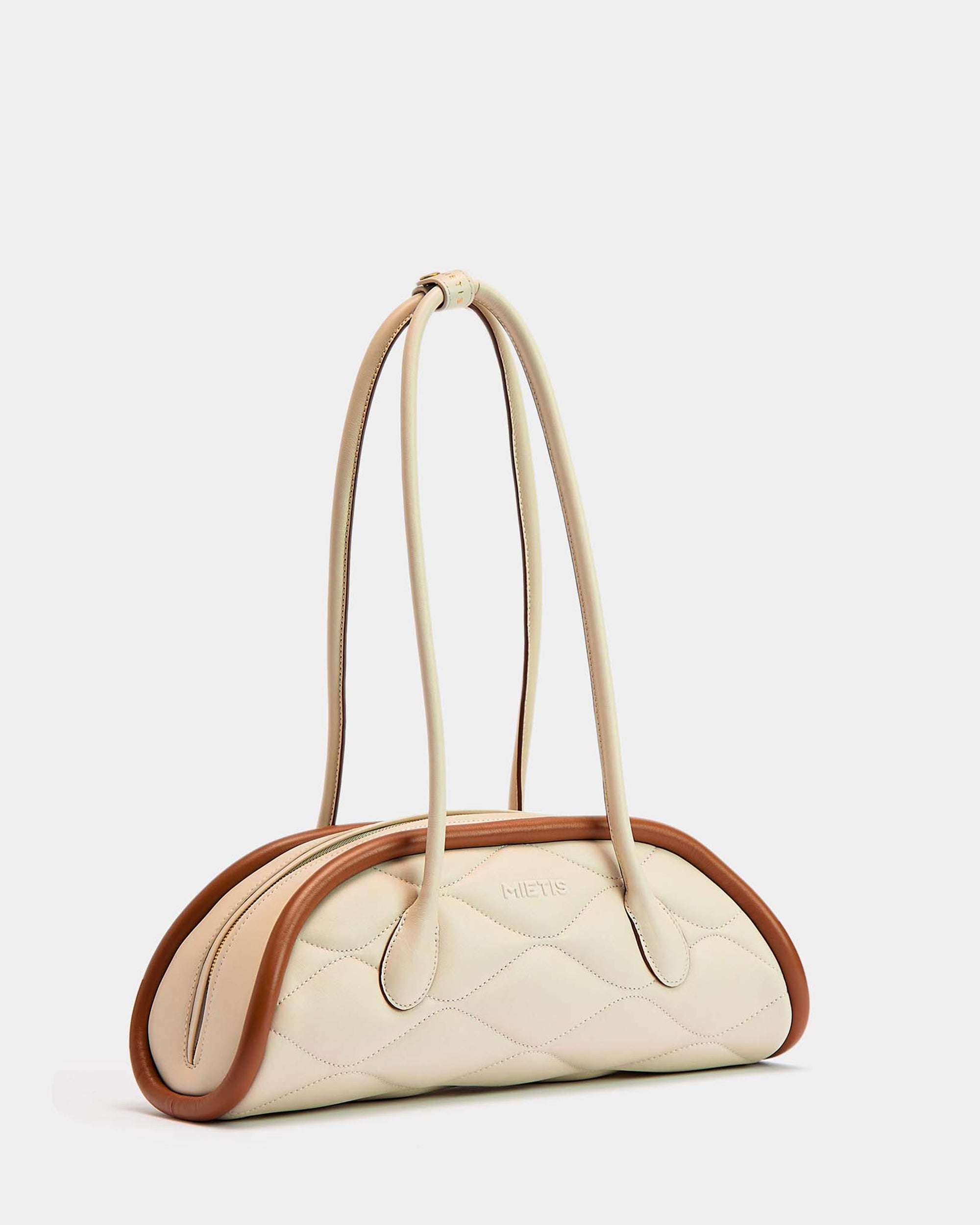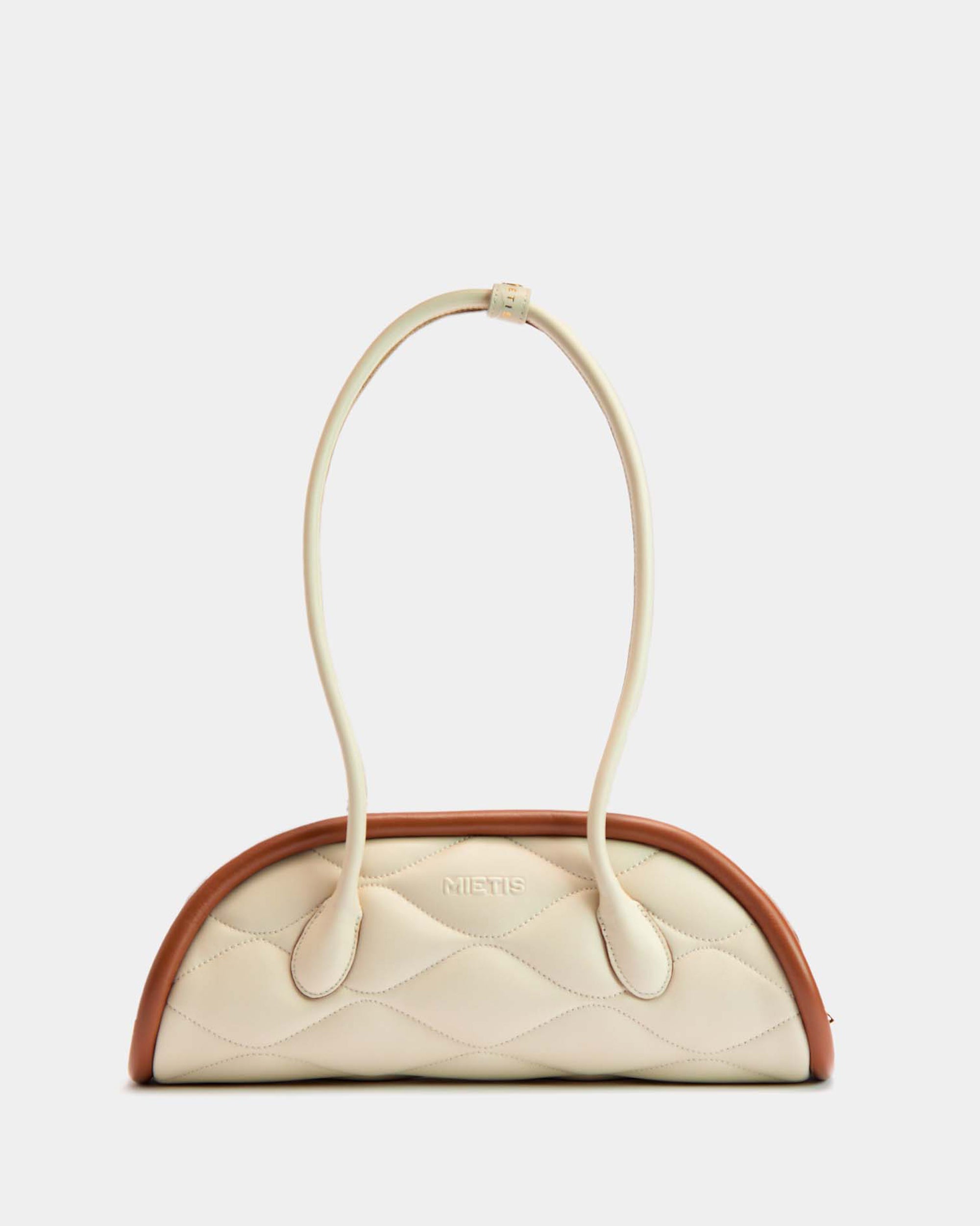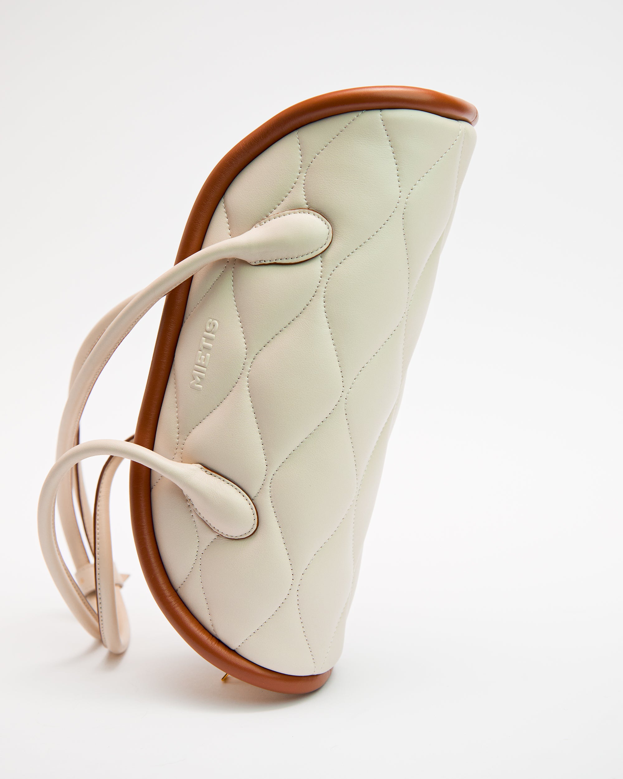 The Plutito EastWest White Tan is a tribute to clean luxury. Crafted entirely in smooth calf leather, it blends Mietis’ signature craftsmanship with a modern EastWest silhouette. Its padded body and sculptural shape offer presence without excess.