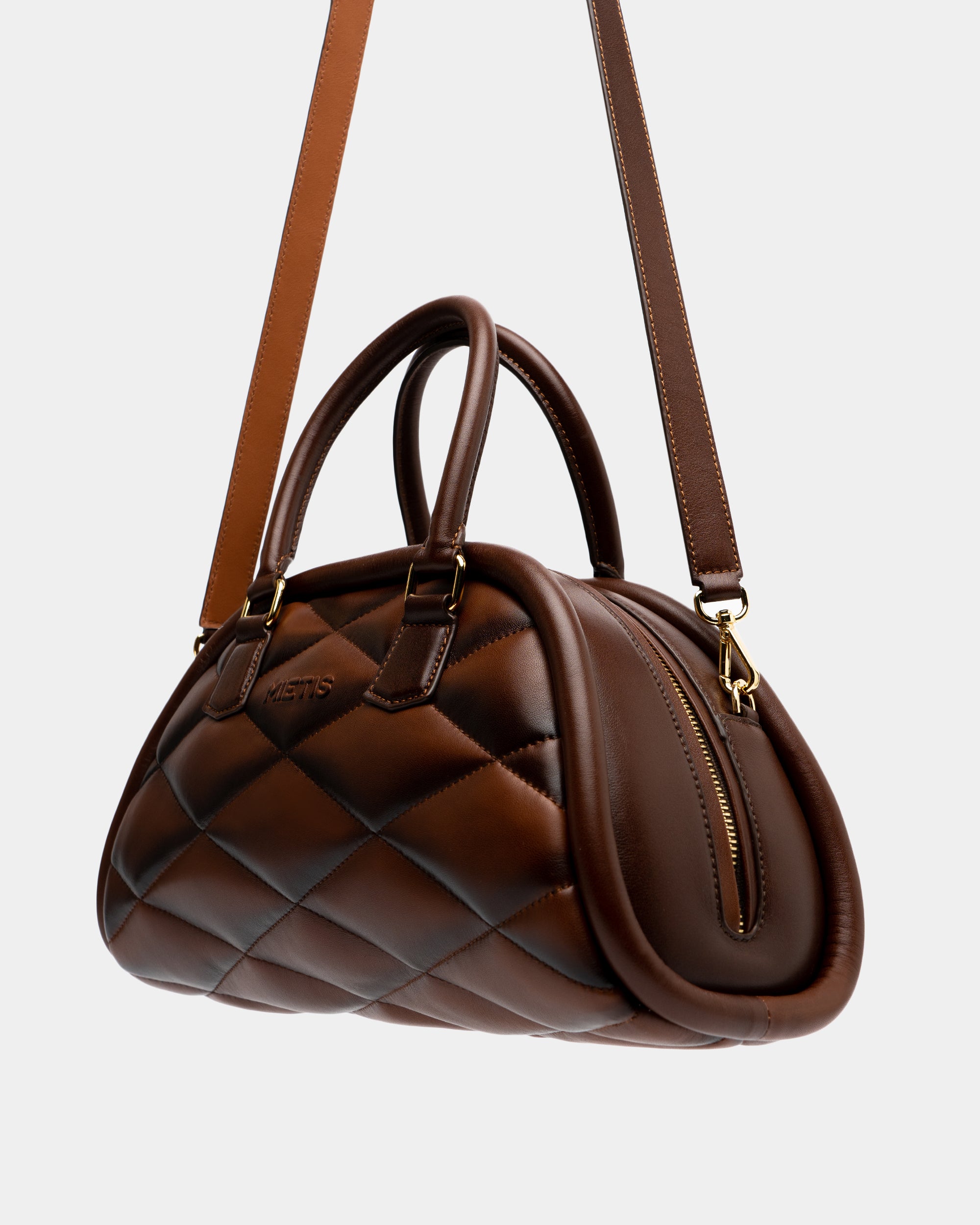Crafted in luxurious, soft padded leather, the Pluto Bag is adorned with delicate, flattened diamond patterns, with the MIETIS logo subtly embossed for added detail. Designed for versatility, it includes a detachable crossbody strap, allowing seamless transition from day to evening. A secure zipper closure completes the piece, protecting your essentials within a thoughtfully organized interior..