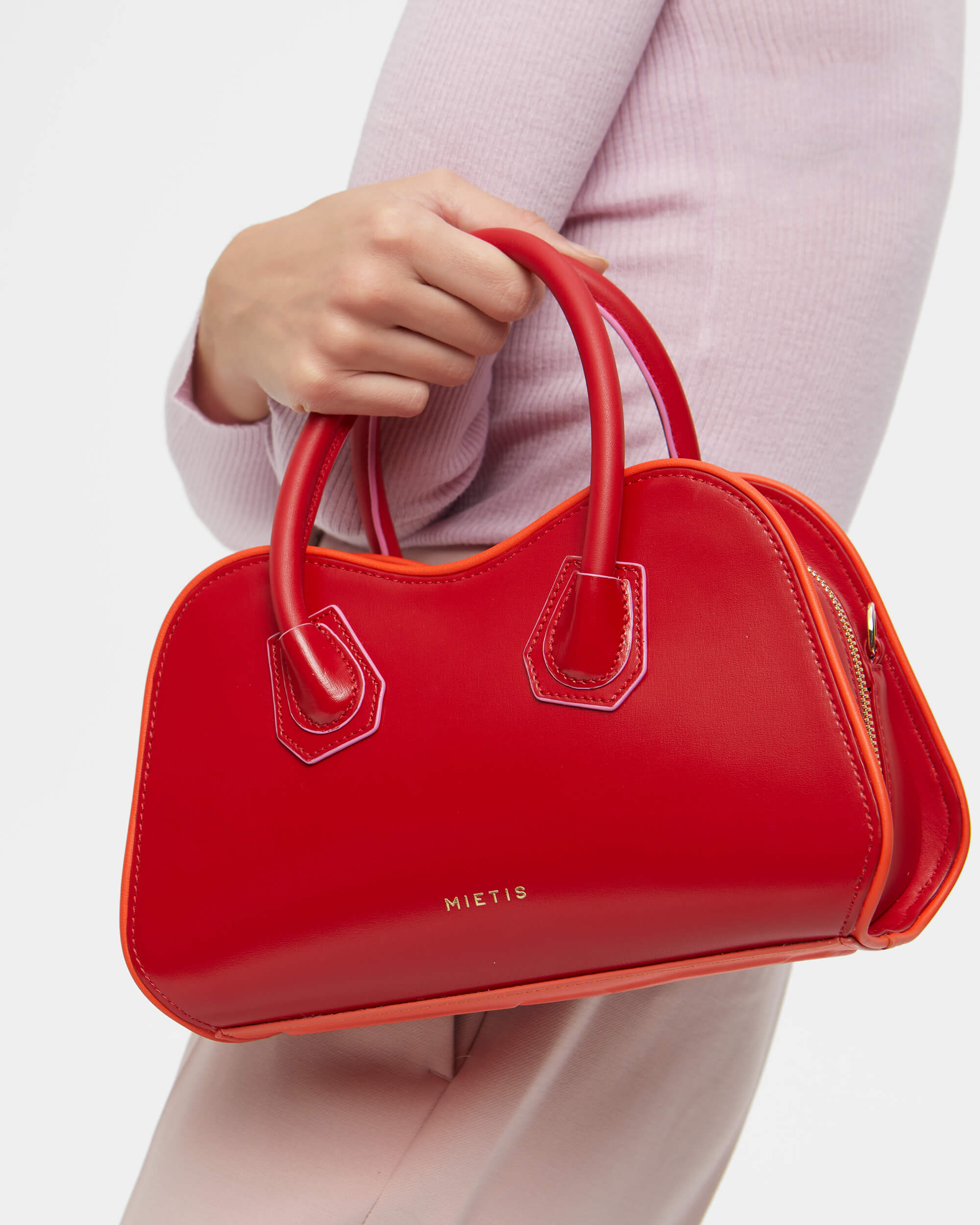 New lines and shapes are always a must for Mietis’s creative director. This time, to create the Marta Bag. A style that has been inspired by the typical bags from the bowling alley, we can see the influence at the bottom of the bag, which is padded with leather details that gives a sportive touch to the bag replicating the volumes of the bowling shoes and combining it with playful stitching and contrasting lines.