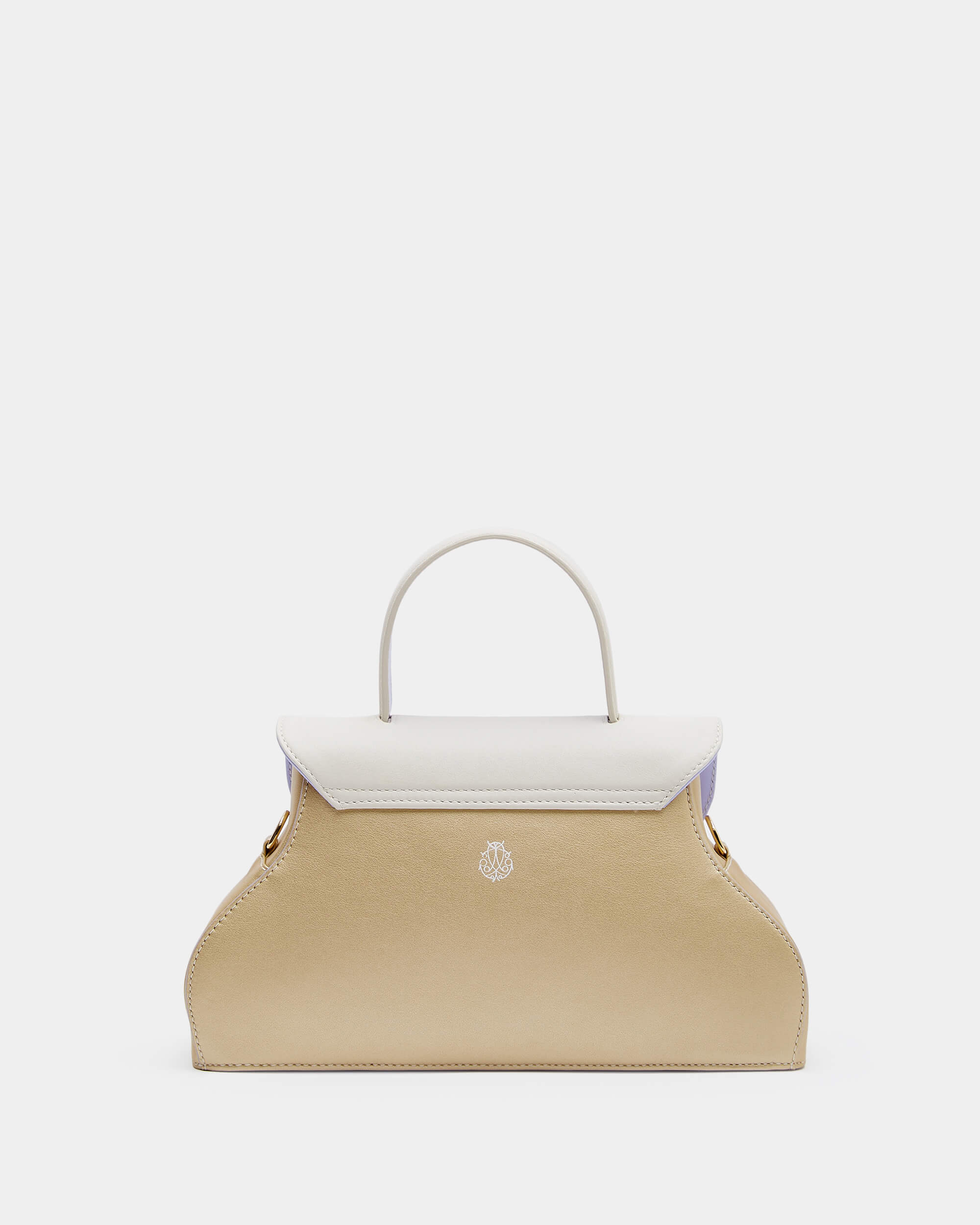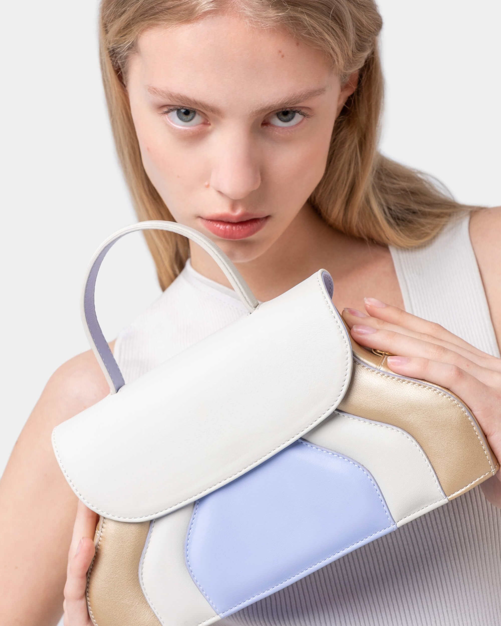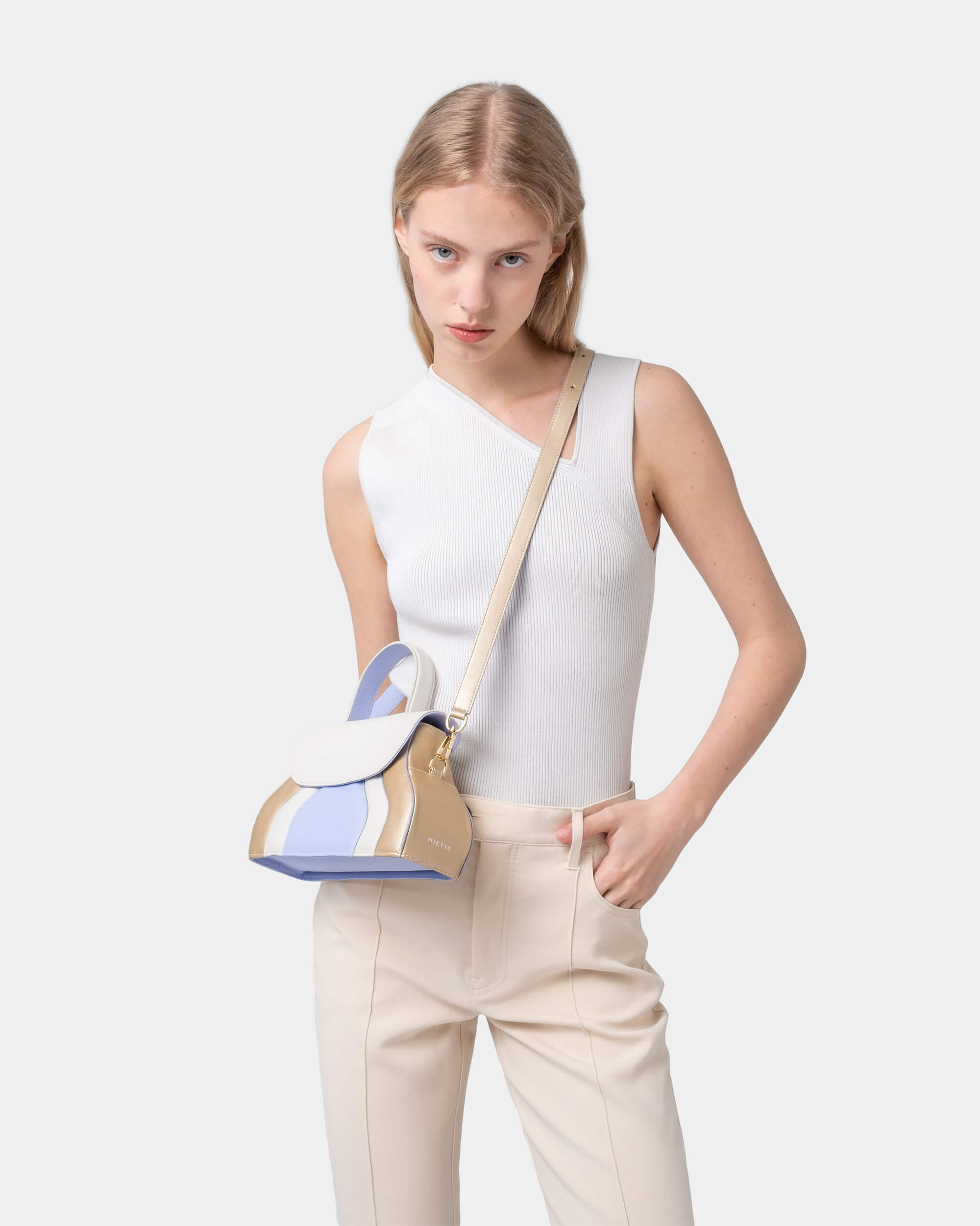The Marieta handbag presents elegant and playful wavy panels at the front finished with the signature feature of Mietis’ colourful stitching and delicate contrasting edges. It can be worn by the top structured handle or leather shoulder strap. The bag guarantees a modern comfort for different attitudes.
