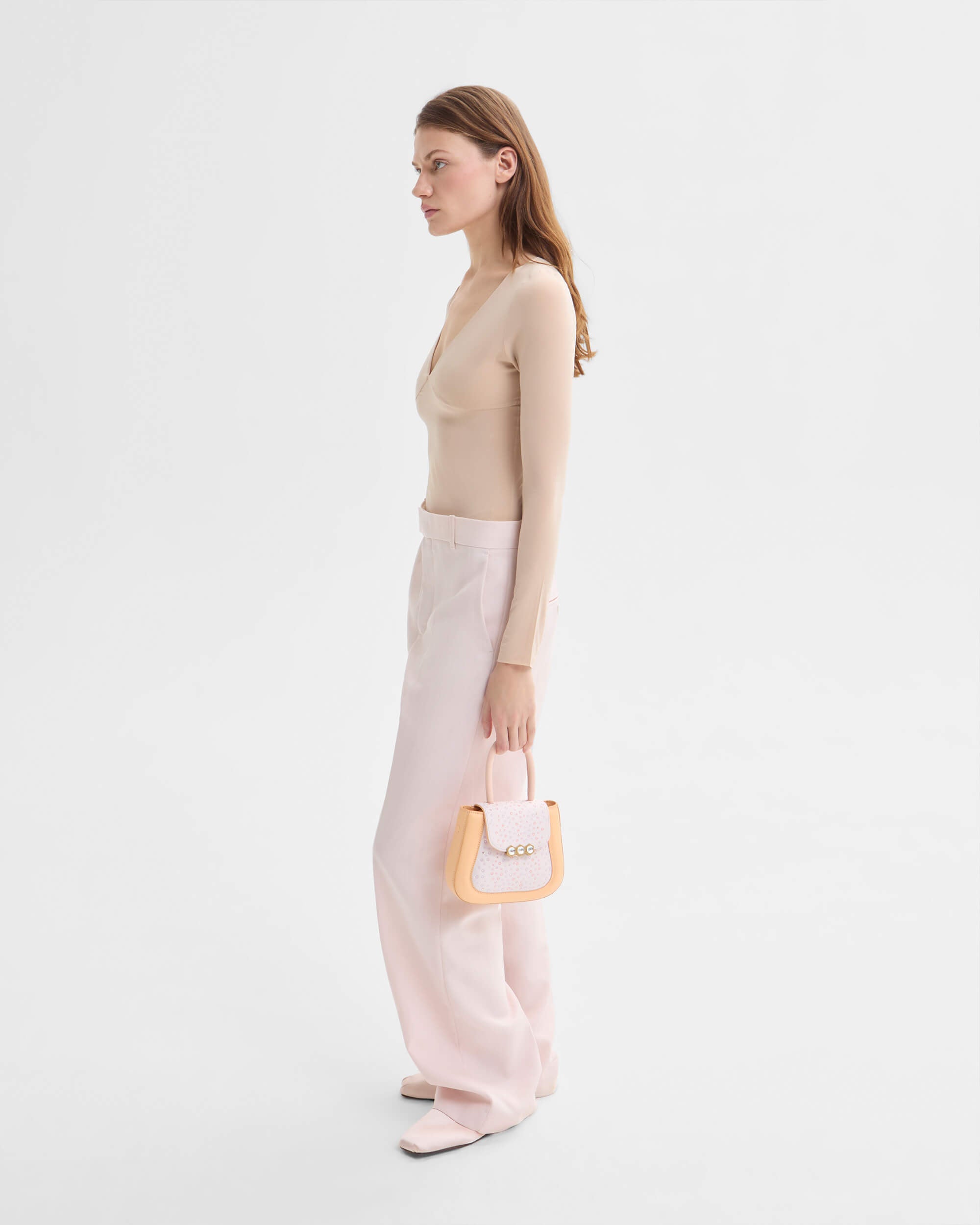 The Mini Jill bag, inspired by the 70s, is a structured bag with soft and padded cowhide leather, applying the contemporary touch of Mietis with the detail of the hand-painted edges and stitching in contrasting colors.