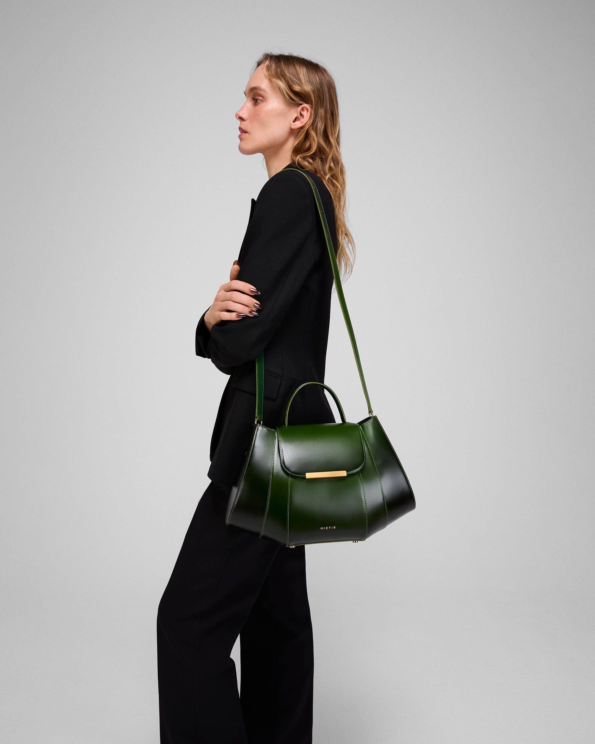 - Ergonomic top handle and adjustable crossbody strap for versatile styling