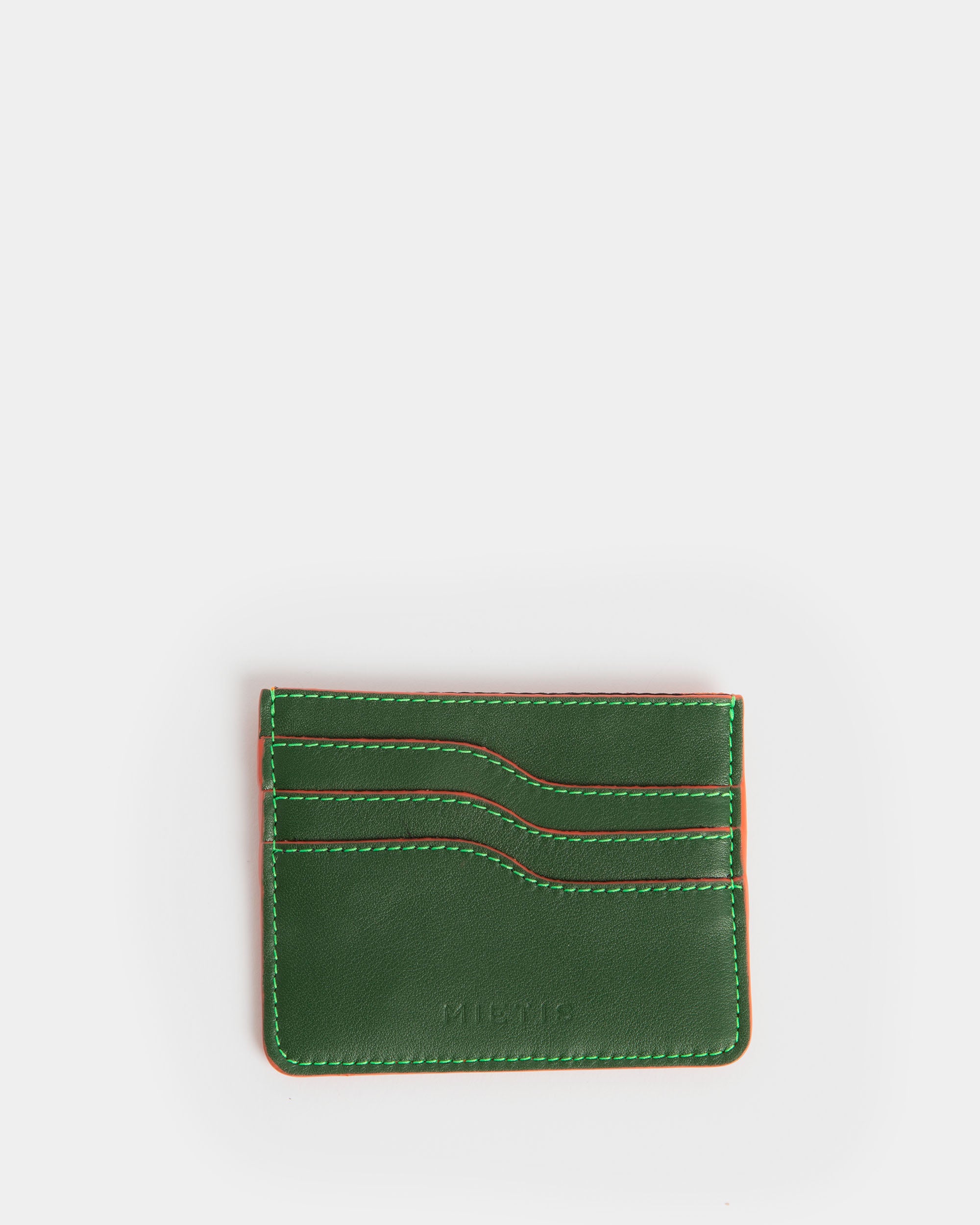 Reversible cardholder crafted in Barcelona from supple cow leather, offering two distinct aesthetics in one refined piece—vibrant electric orange paired with serene Khaki Green. Six card slots and a concealed interior pocket provide practical organization without compromise. The minimalist design and embossed MIETIS signature reflect our commitment to understated craftsmanship and timeless restraint.