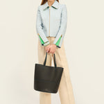 Soho tote bag in a small grain calf leather with a great resistance. Leather handles and two internal slip compartments. Its interior twin leather finishing for the interior gives an elegant touch. The hand-painted edges embodies Mietis’s artisanal know-how with a modern sensibility.