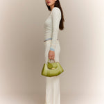 Defined by Tatito’s signature geometric silhouette, this piece balances sculptural elegance with distinctive character. It can be carried by its ergonomic top handle or worn crossbody with the adjustable leather strap, making it as versatile as it is striking.