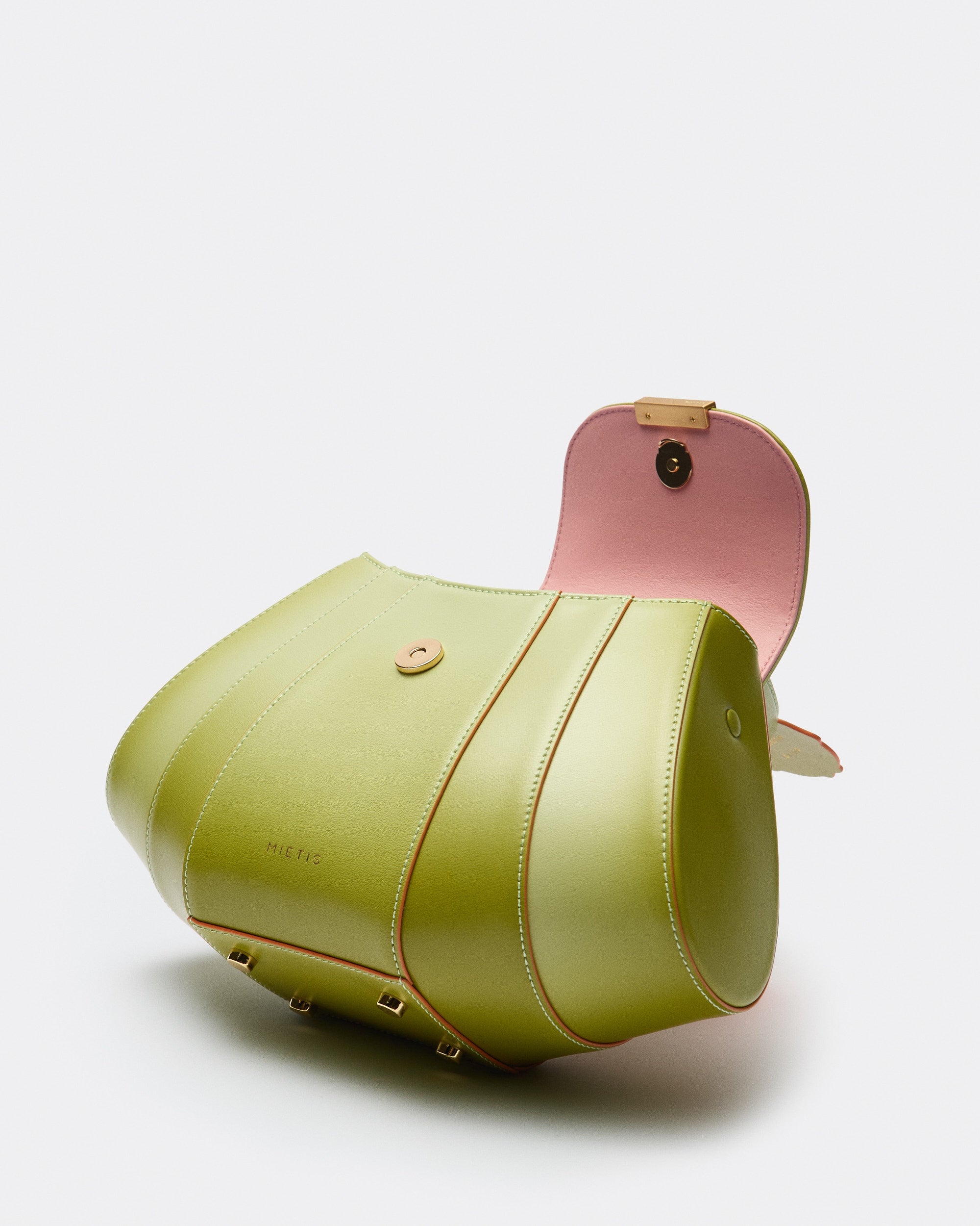 The Tatito Fresh Matcha Fumé reimagines our iconic Tatito in a limited edition of only 50 units. Crafted in smooth, structured calf leather, its soft matcha green tone is enhanced by a hand-painted fumée finish, contrasted by vibrant orange edges and a pink leather-lined interior.