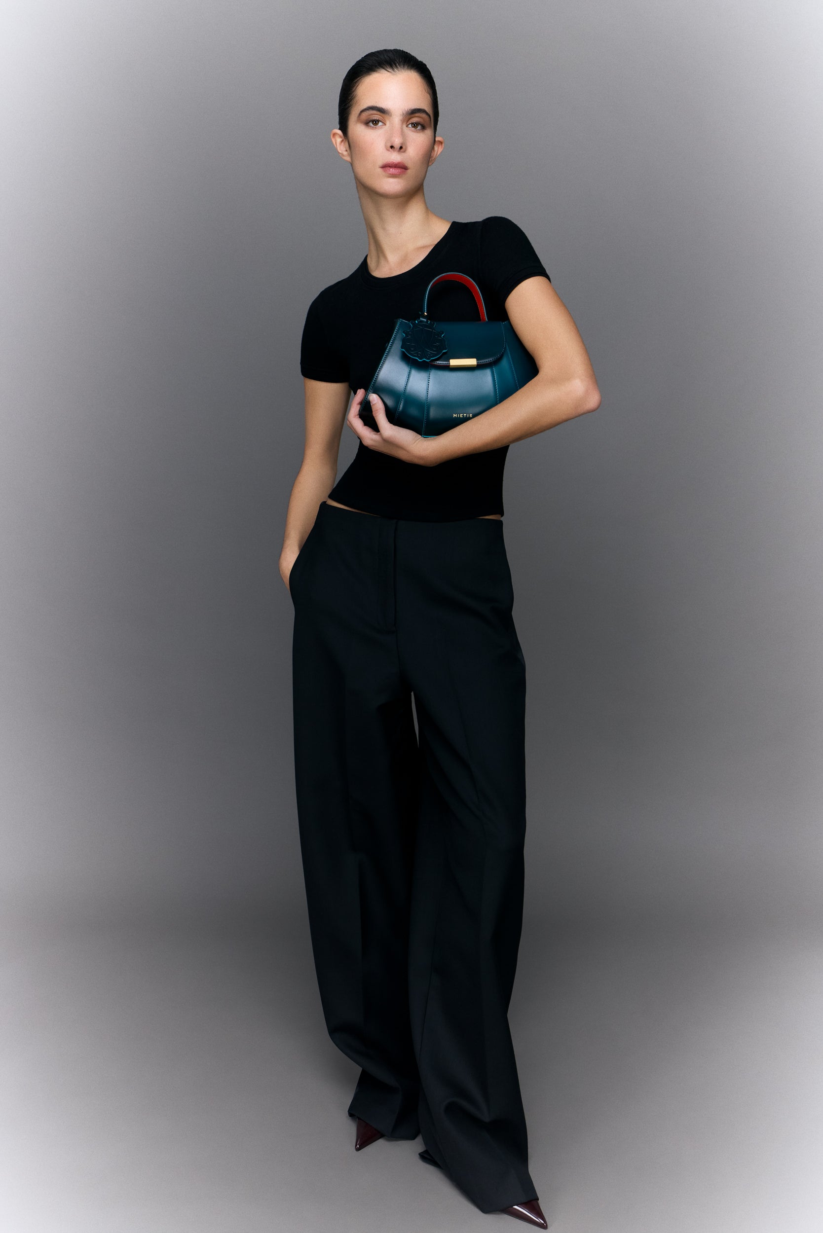 The Tatito Petrol Fumée elevates our iconic Tatito design with the exclusive fumée technique, adding smoky, hand-painted gradients that give depth and character to its sleek calf leather. This limited-edition piece captures Mietis’ signature geometric lines in a compact yet striking silhouette, blending elegance and craftsmanship in every detail.