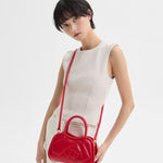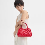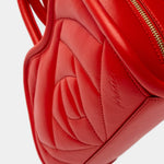 Meticulosamente elaborado en suave piel de vacuno acolchada, su voluminosa forma de rosa lo convierte en una obra de arte y un accesorio a la vez. El cierre de cremallera metálica garantiza su seguridad, mientras que la correa tubular de piel permite llevarlo cruzado con facilidad.
