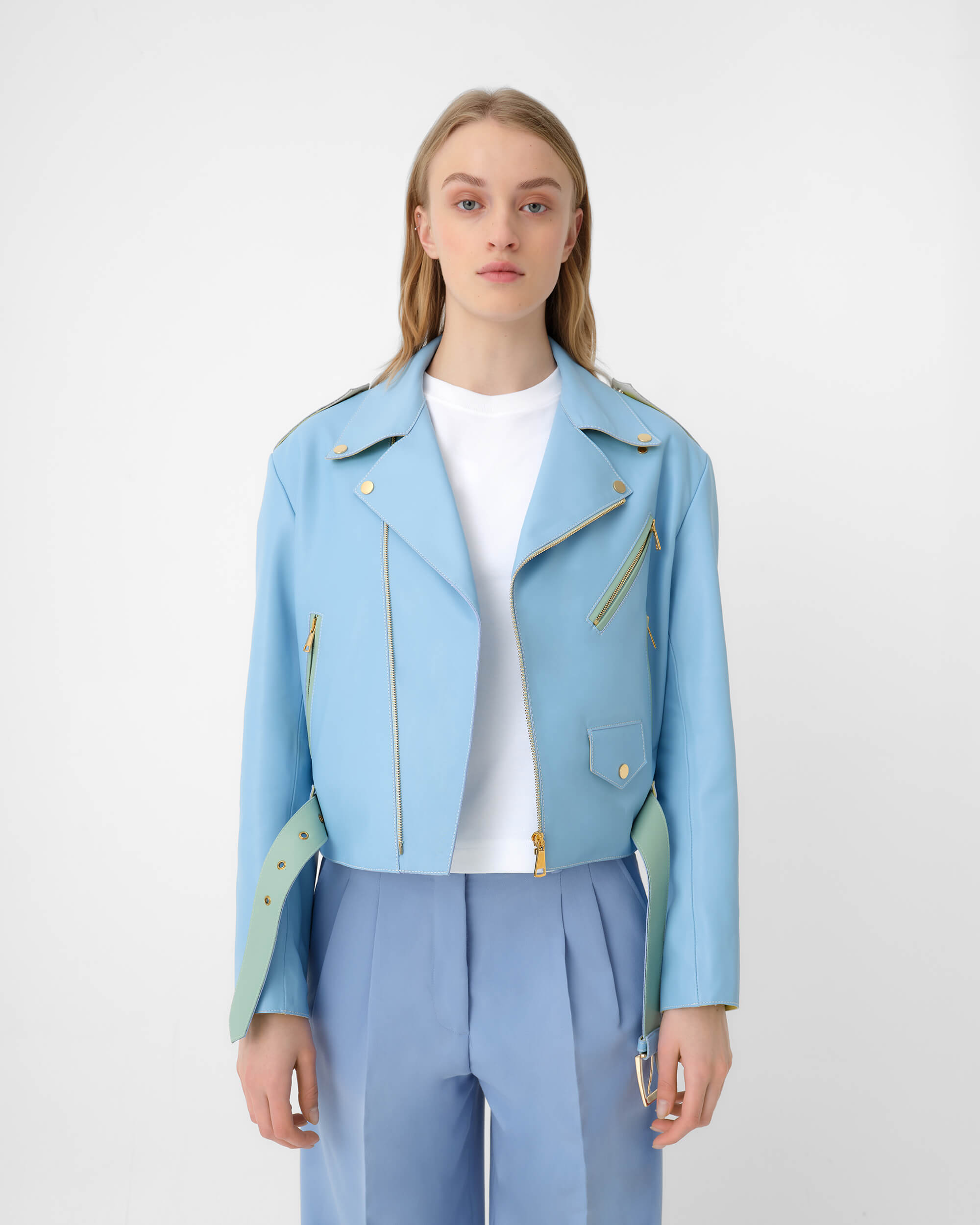 Chaqueta Biker Azul Celeste