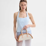 Sa forme évolutive, soulignée par un passepoil distinctif et audacieux, crée un jeu de couleurs attrayant. Fabriqué en cuir mia, il offre une expérience tactile luxueuse, avec un corps rembourré avec une silhouette sinueuse méditerranéenne distinctive et le logo MIETIS en relief.