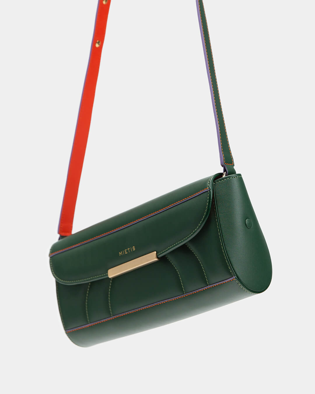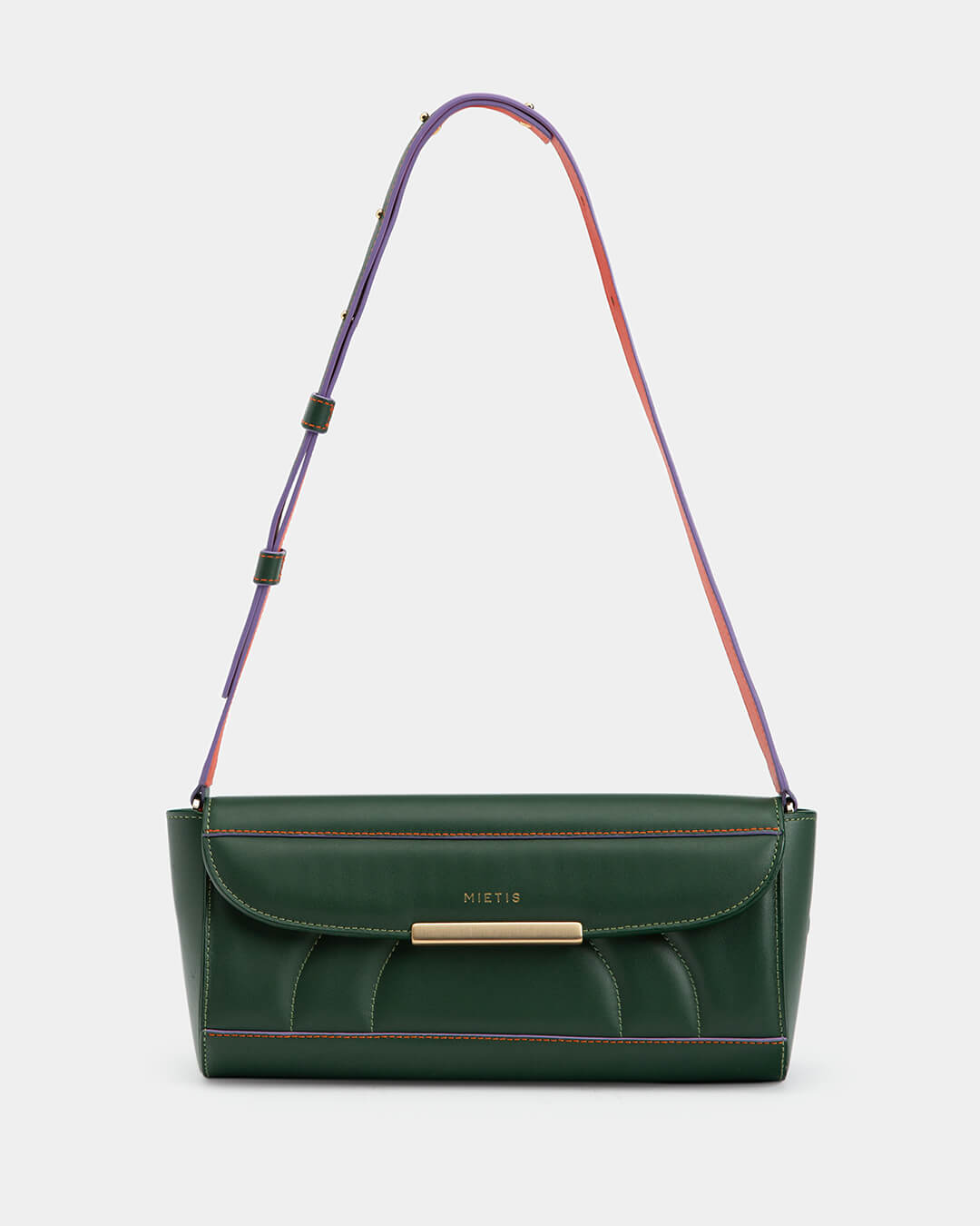 The Blossom shoulder bag is crafted from smooth calf leather and finished with a gold polished buckle in a sleek design. The bag lends a subtly playful touch to everyday codes with its padded wavy pattern at the front and colorful stitching. Wear it on the shoulder or cross-body. The Blossom bag is finished with the Mietis’ signature logo engraved in gold.