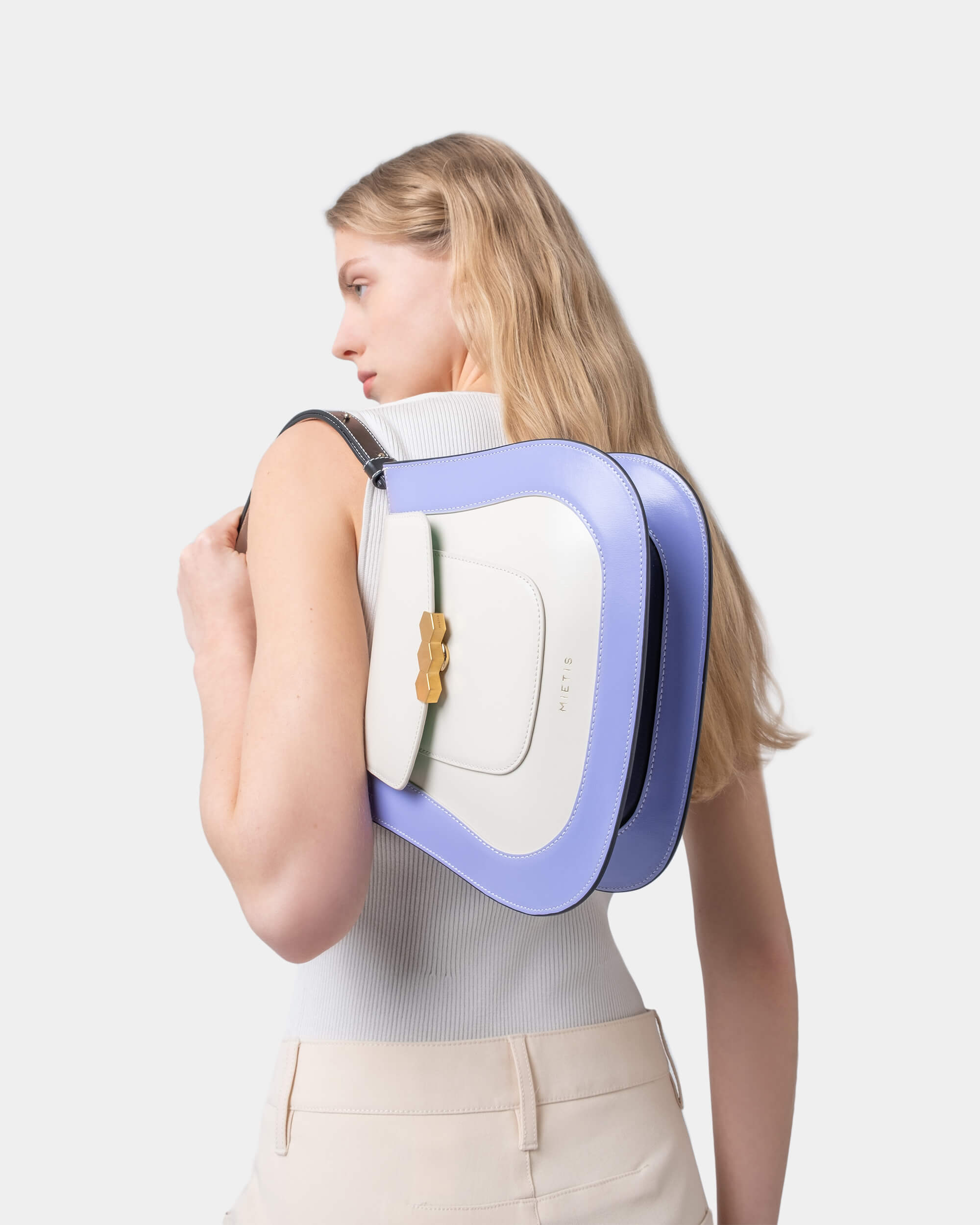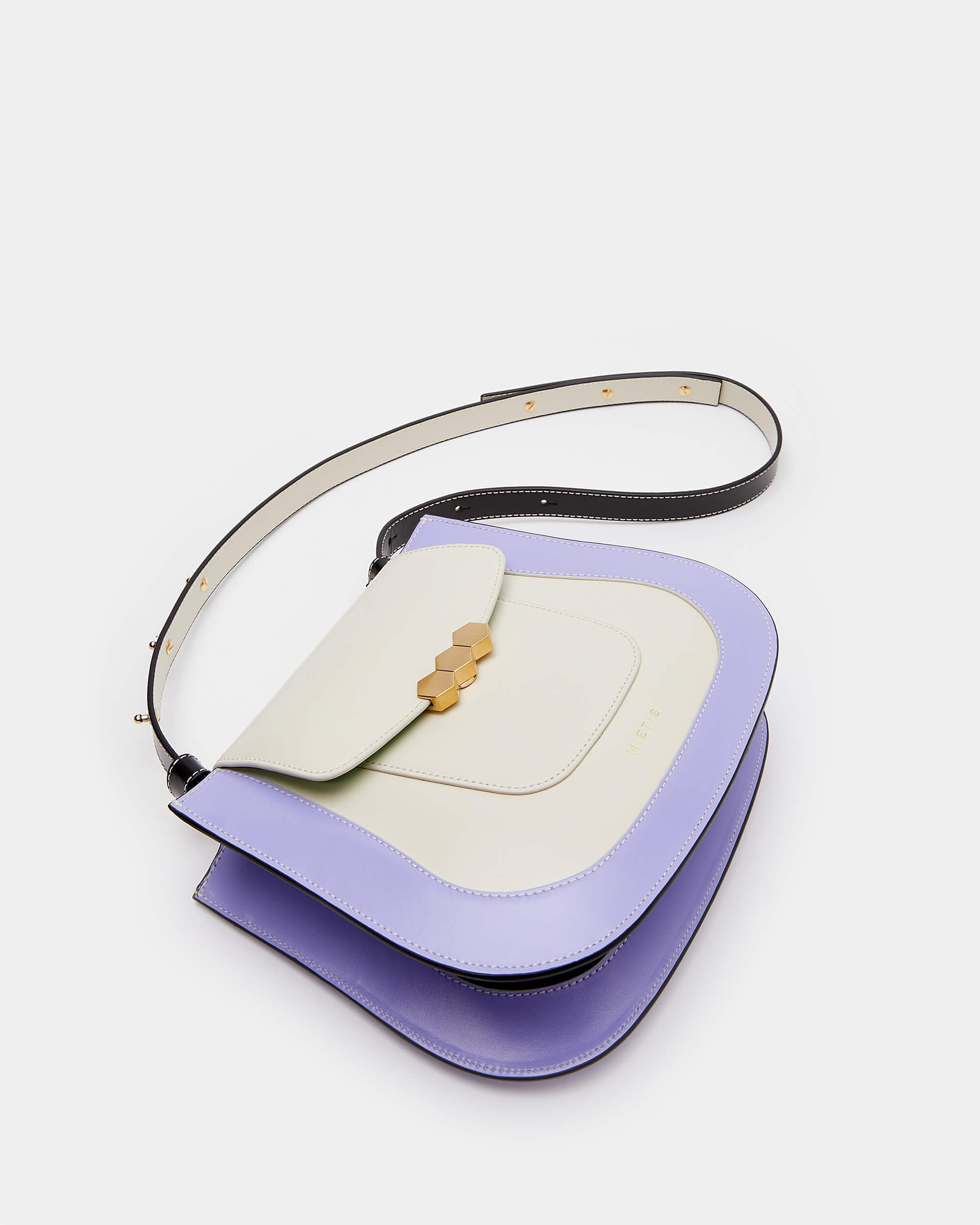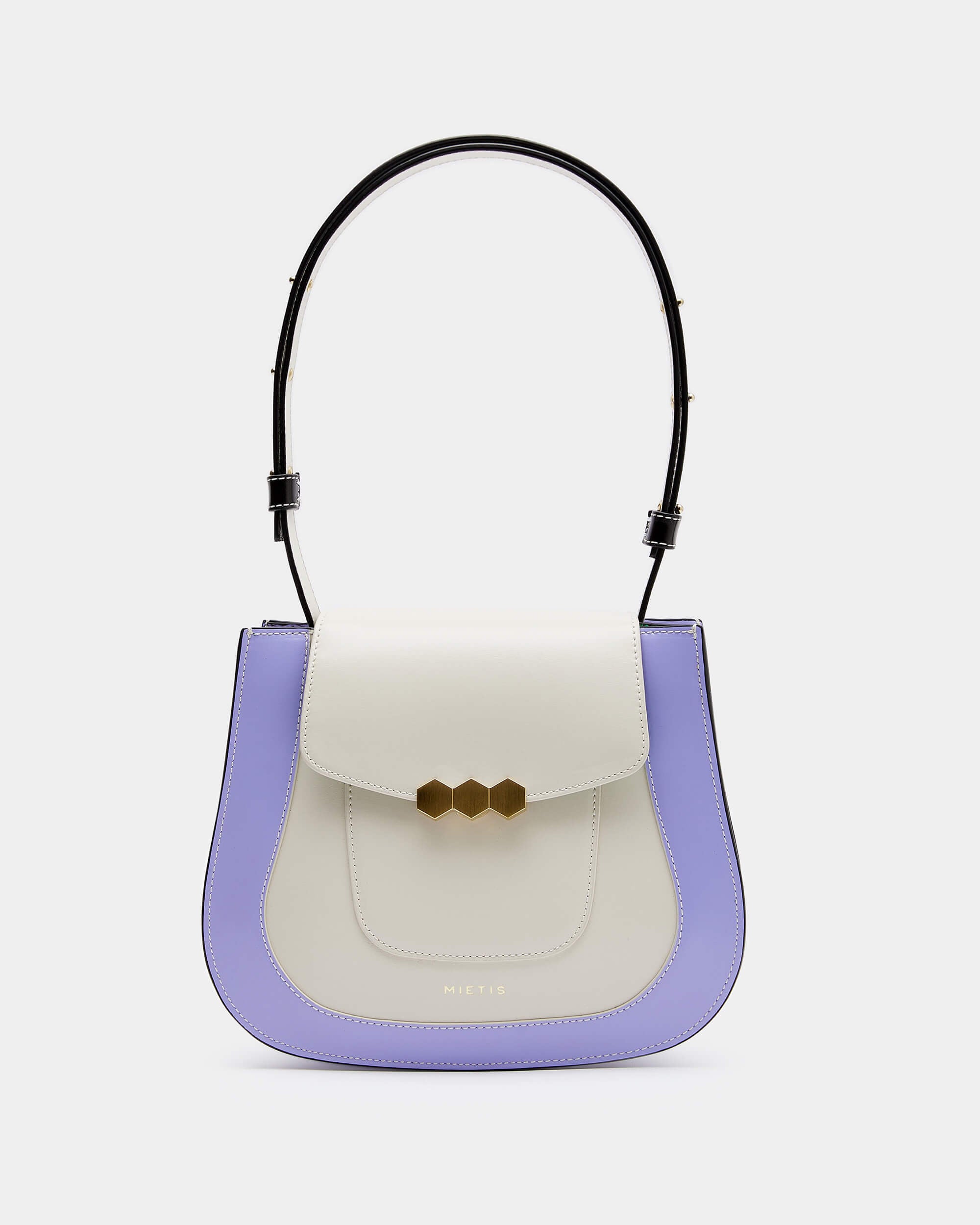 The Jill bag, inspired by the 70s, is a structured bag with a stiffer and shinier cowhide leather, applying the contemporary touch of Mietis with the detail of the hand-painted edges and contrasting stitching. The Jill bag is finished with a custom metallic closure: the three hexagons, which symbolize harmony and balance.