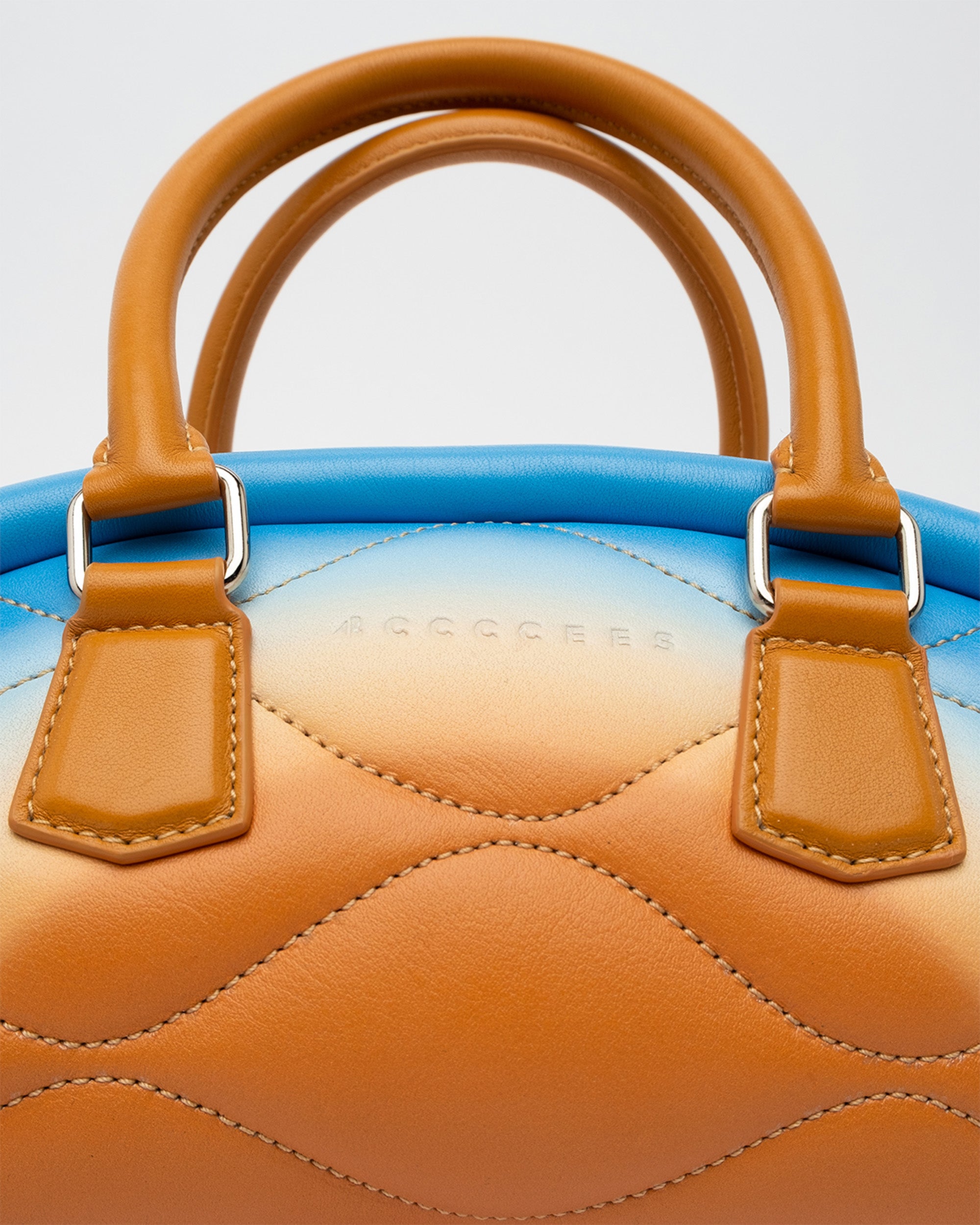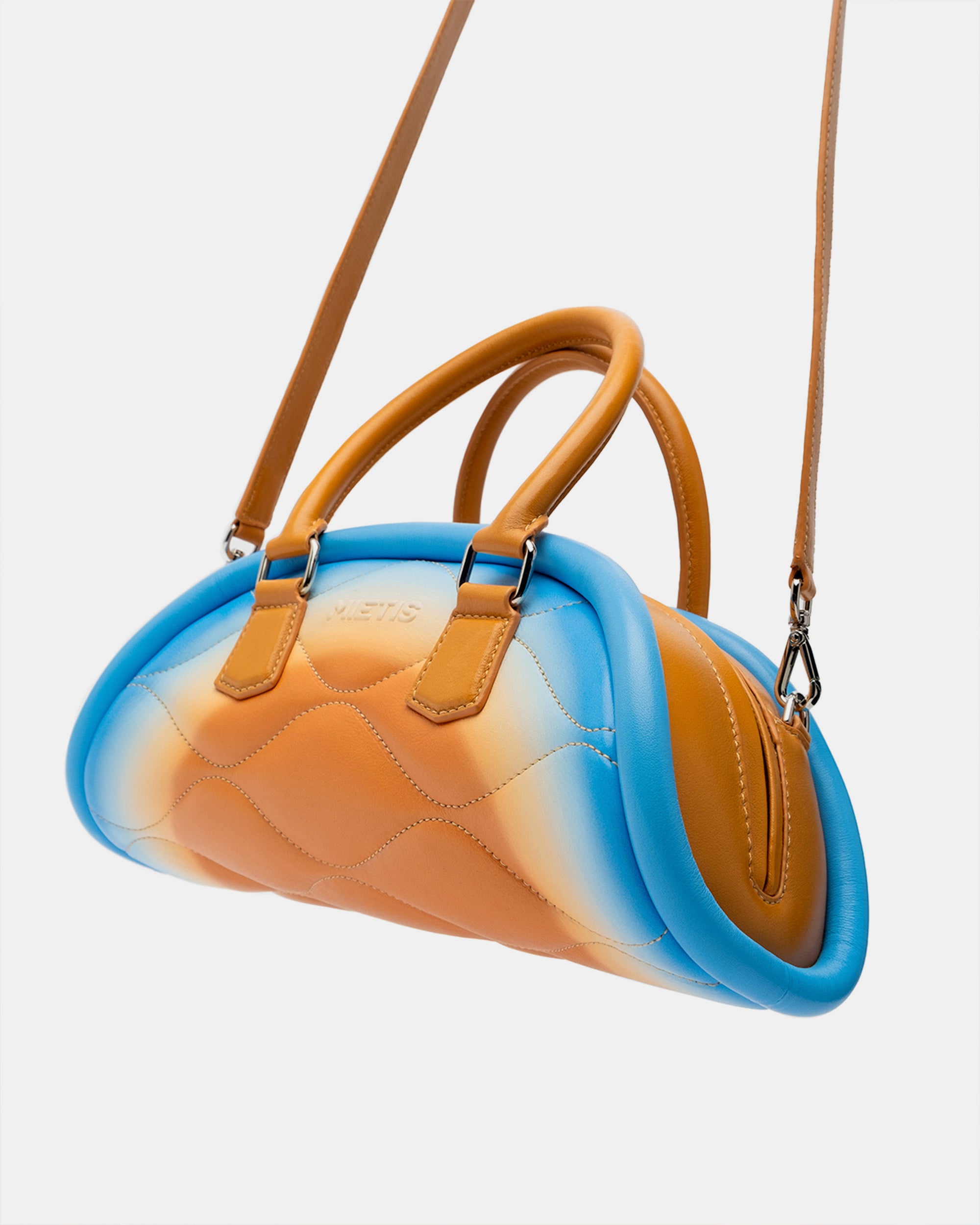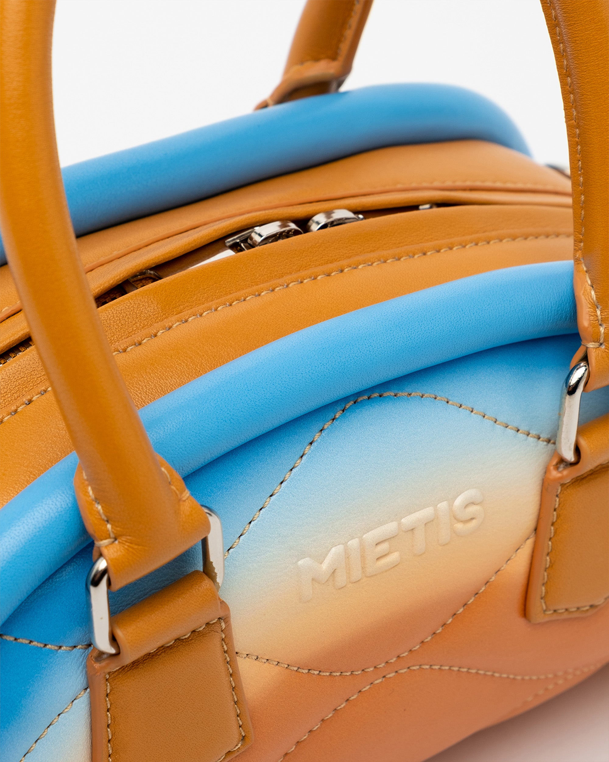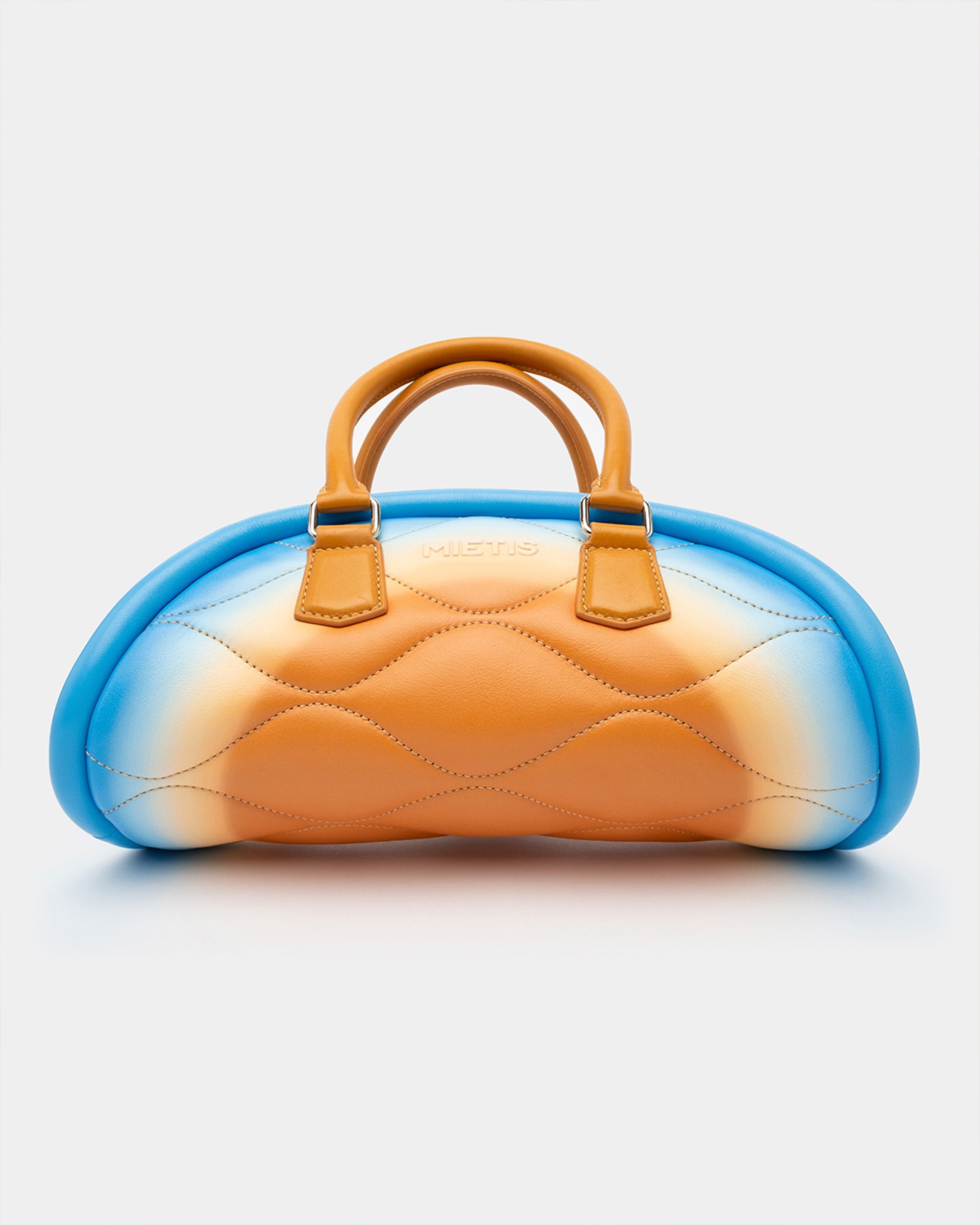 In this special collab with 4CCCCEEEES, it takes on new life through a sand-toned gradient that evokes desert horizons — from deep amber to soft beige. Crafted in our premium mia leather, its padded body features the iconic Mediterranean curves and Mietis logo in relief.