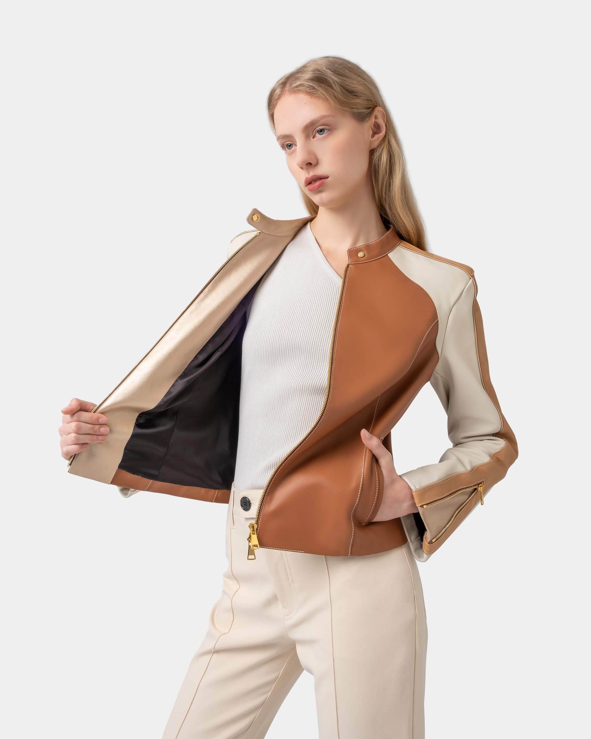 The Classic Biker is made with 100% calf leather. The design features a notched lapel collar with press-stud fastening. Offset zip closure and side pockets.