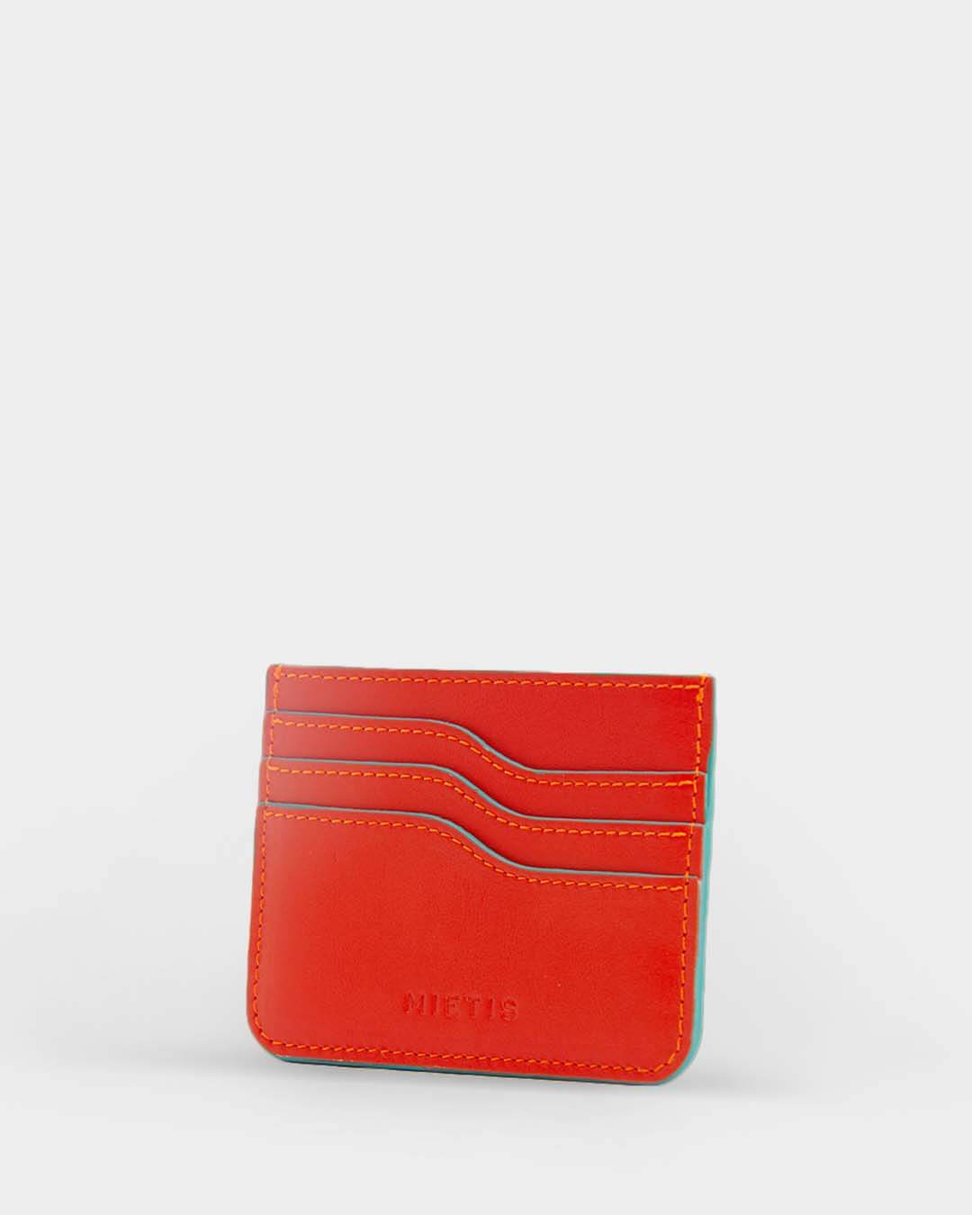 This leather card holder stands out for its compact, elegant lines. The accessory with six card slots and internal pocket is brightened by the iconic MIETIS logo.