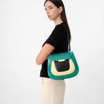 The Jill bag, inspired by the 70s, is a structured bag with a stiffer and shinier cowhide leather, applying the contemporary touch of Mietis with the detail of the hand-painted edges and contrasting stitching. The Jill bag is finished with a custom metallic closure: the three hexagons, which symbolize harmony and balance.
