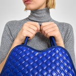 Meticulously crafted from premium materials, the bag captures the fluidity and movement of waves through its embossed leather details, while the deep blue hue exudes timeless sophistication. The sculptural lines and organic textures seamlessly blend elegance with artistic heritage, making this piece as captivating as the architecture that inspired it.